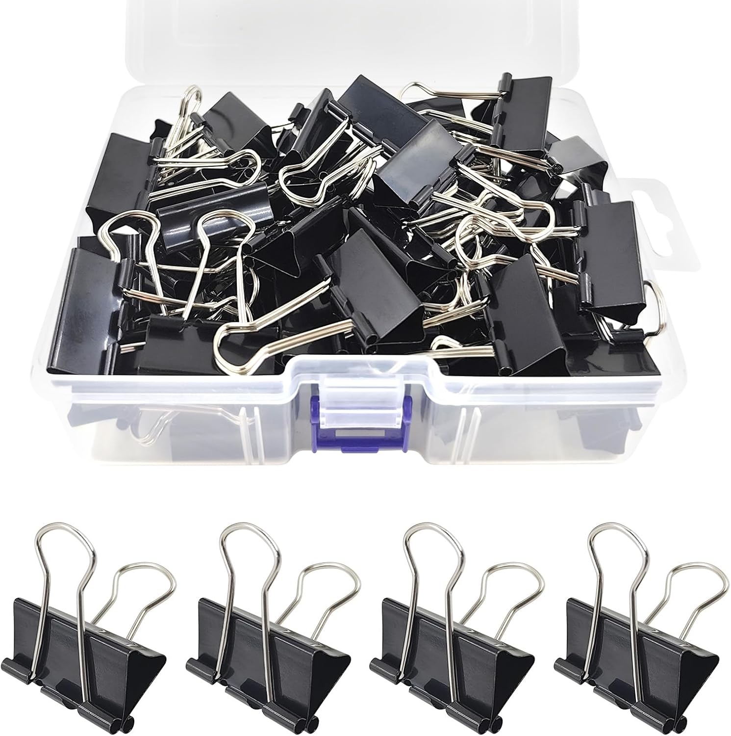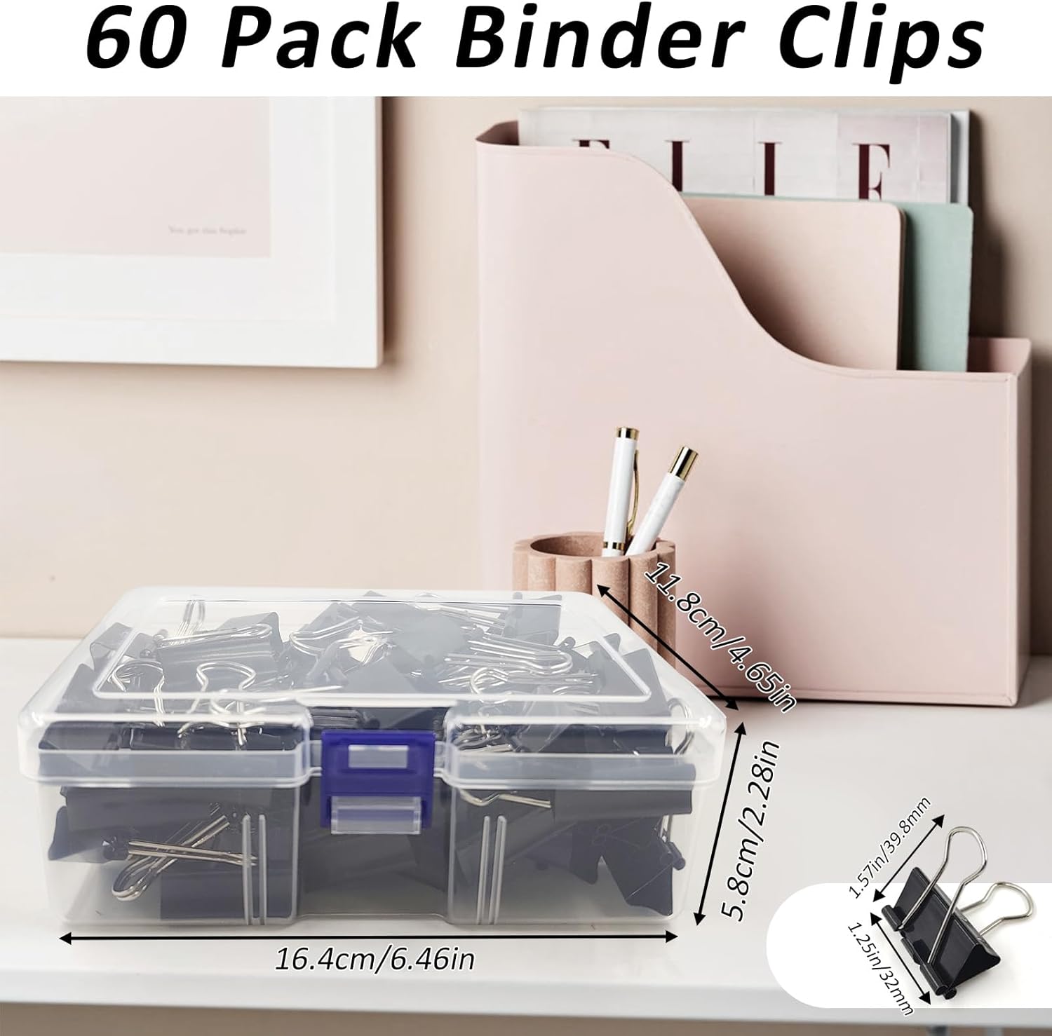 60 Pack Binder Clips Medium, 1.25 Inch/32mm Black Binder Paper Clips with Container,Big Paper Clamps for Office Supplies, Home, School,Business Document Organizing Paperwork (Black)