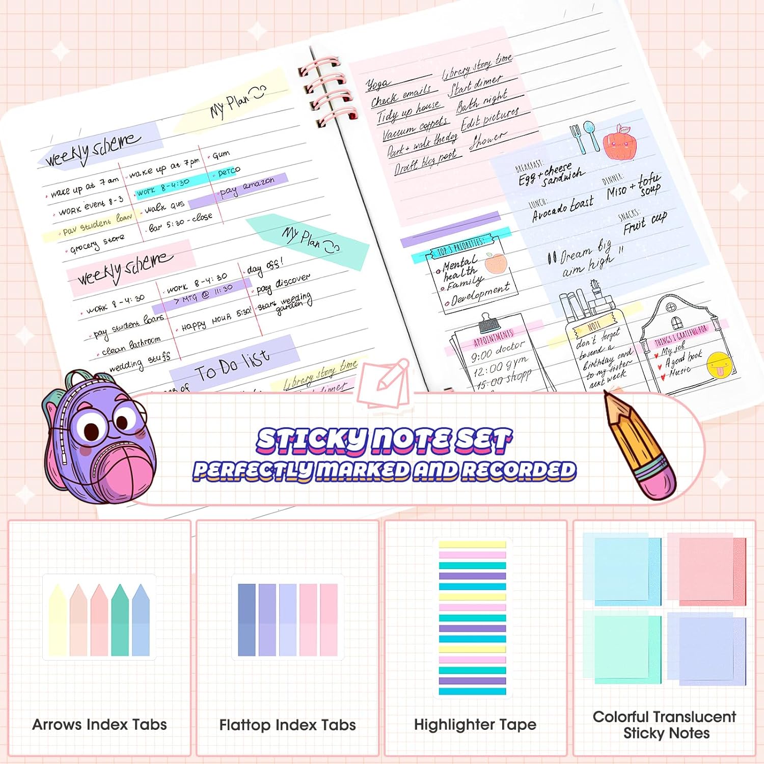 ✍ Value Stationery Set: This aesthetic stationery set has 12 highlighters, 5 gel pens&10 gel pen refills,6 automatic pencils&6 pencil refills, 2 erasers, 5 beautifully designed bookmarks,1 arrows index tabs,1flattop index tabs,1 highlighter tape,4 colorful translucent sticky notes,1 marker, aesthetic A5 notebook,66 Bible Tabs and 9 personalized blank Tabs,and a pencil case. It is suitable for both kids and teenagers or office workers, and can meet your different uses