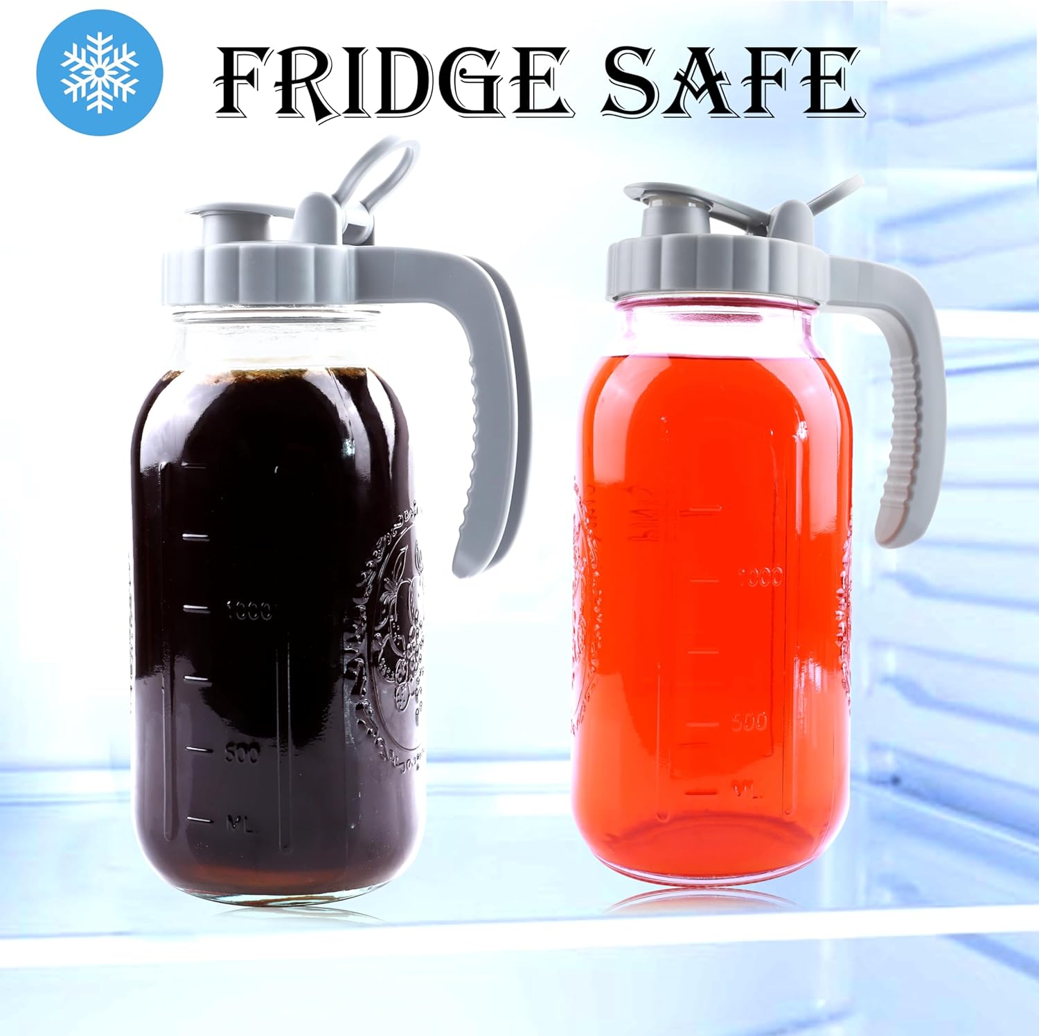 Heavy Duty Glass – 64 oz wide mouth mason jar pitcher is made of thickened, high and low temperature resistant glass. That can be used for cold or Boiling water. non-toxic, BPA-free and lead-free. Bring you a healthier lifestyle(Dishwasher safe).