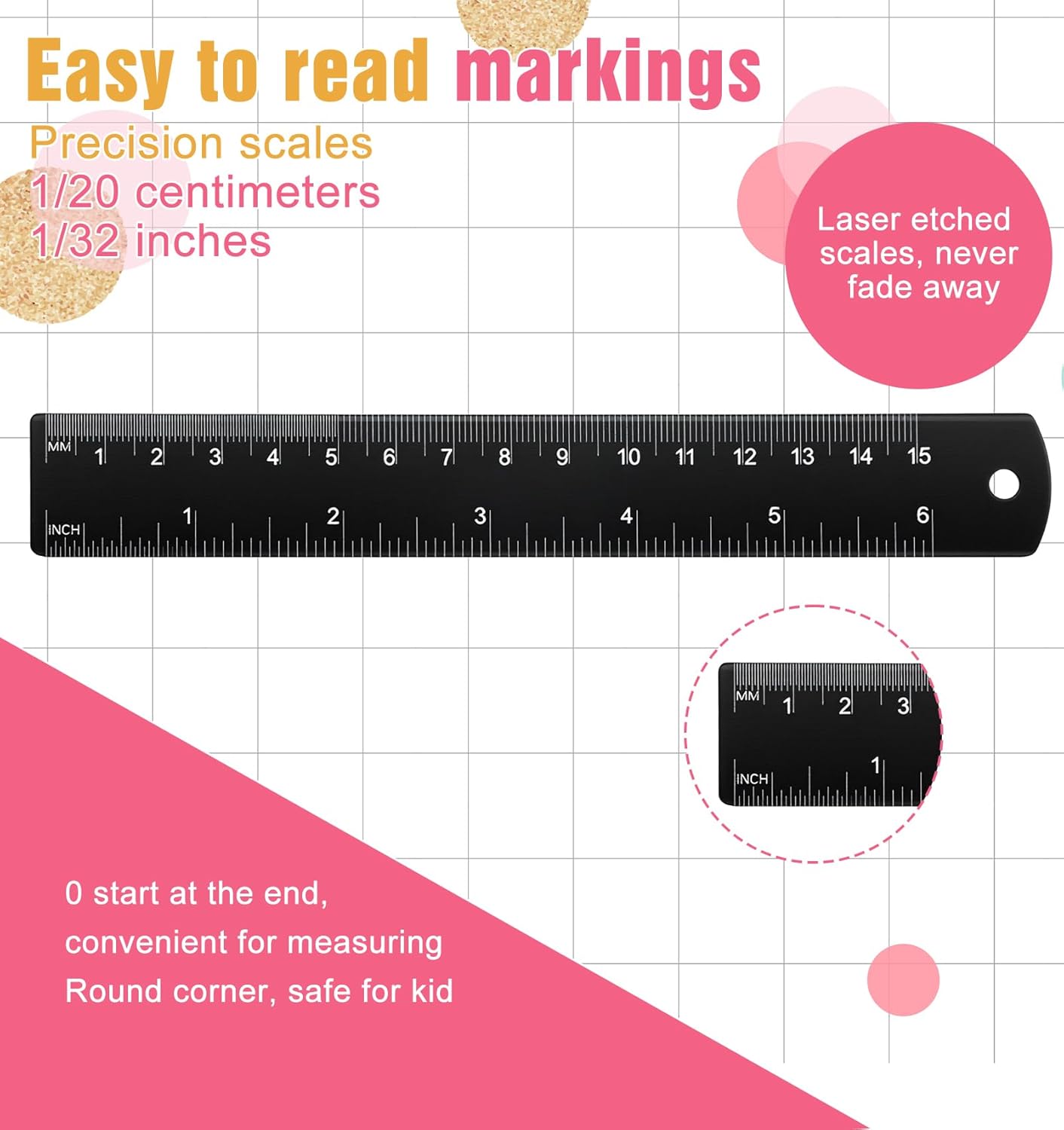 Laser Engraved Marks: The 7 inch metal ruler has laser-engraved scale markings, keeping the marks clear and easy to read even after long-term use in school or office;