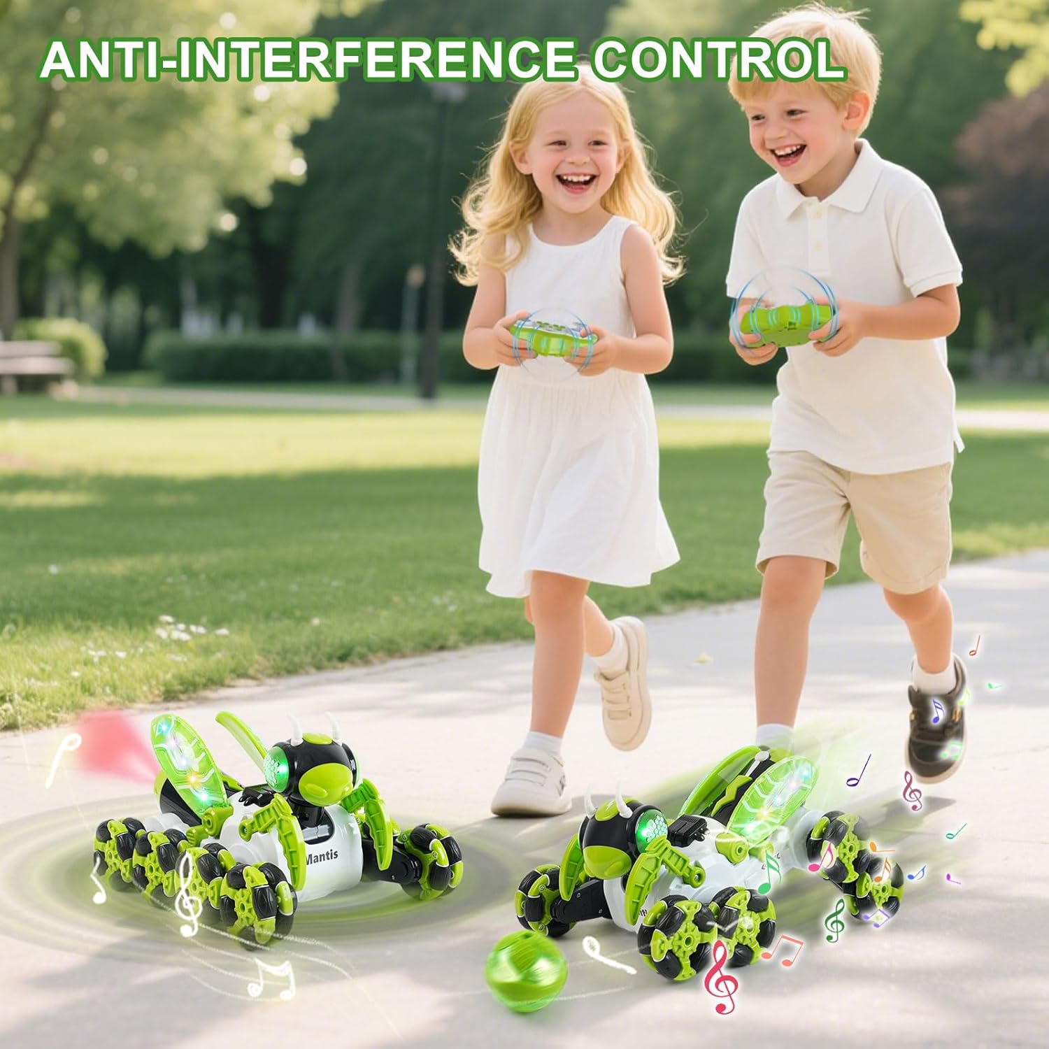 Mechanical Insect Stunt Car: Our innovative 8-wheel drive remote control car features a unique insect-inspired design and performs amazing stunts such as arc drifting, 360 degree spins, and steep climbs. It comes with a detachable goal and ball, allowing you to use the car’s wheels or body to push the ball into the goal. In addition, lights, music, and spray effects enhance your driving experience, making it fully immersive.