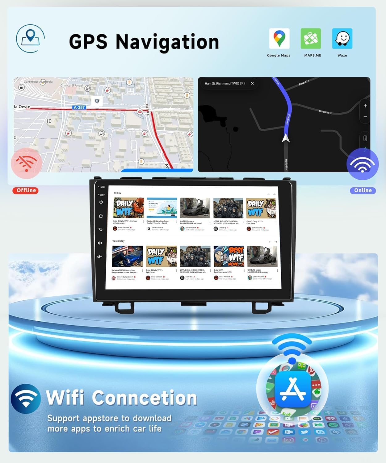Wireless Carplay / Android Auto: The car play radio for Honda CRV supports wired and wireless Carplay and Android Auto, allowing easy access to your phone’s apps, such as real-time online map, music, call, and enabling voice control, enhancing your driving safety and comfort