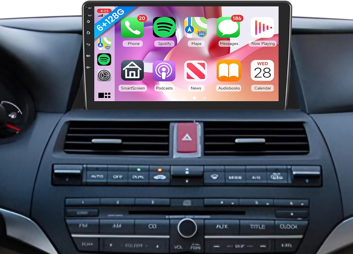 8 Core CPU Android 13 system: Android car stereo carplay for Honda Accord 2008 2009 2010 2011 2012 2013. Carplay stereo equipped with Memory:6GB (RAM)+128GB (ROM) with powerful and stable processing and storage, with no lag or delay. 10.1 inch IPS touch screen: Enjoy a large and clear display with responsive touch control, which allows you to operate the device easily and comfortably. With double USB port.
