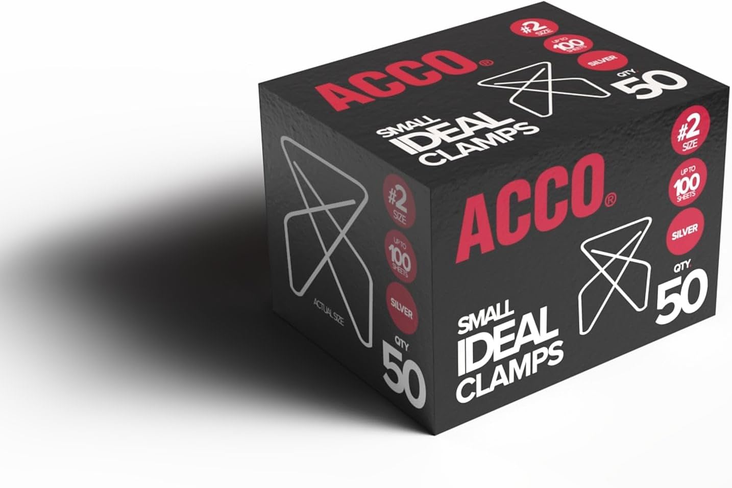 ACCO Ideal Paper Clamps feature a unique butterfly design that stretches to hold small and large documents alike without taking up valuable file space. The larger, heavier 0.06 gauge steel wire holds up to 100 sheets of paper tighter and longer, all the while resisting tears. ACCO Ideal Paper Clamps have a space efficient design that won’t take up valuable space in your files or on your desk. ACCO combines quality, style and innovation to become your total resource for accounting and storage supplies.