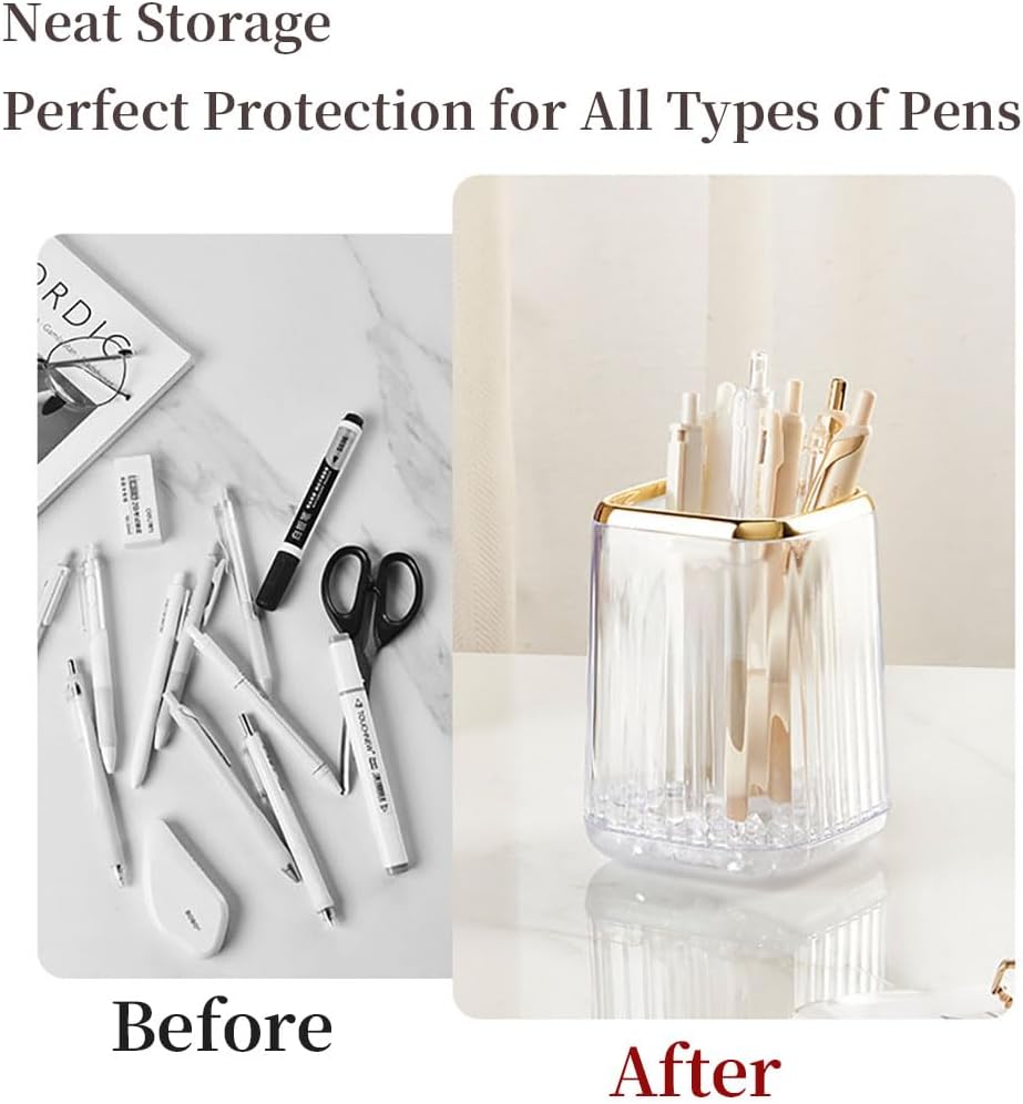Smart Space-Saving Design: Compact footprint fits tight spaces (3.35″ L x 3.35″ W x 4.5″ H). Holds 10+ standard pens or 10+ makeup brushes vertically. Weighted base prevents tipping even with heavy-handled brushes.