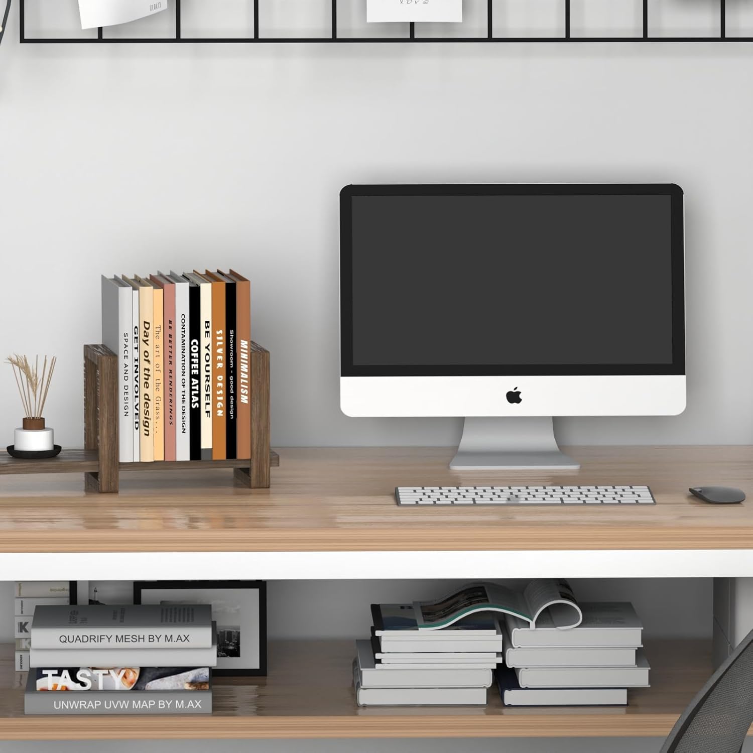 This minimalist bookshelf combines sustainability with durability. Its sturdy construction ensures safe use for storing books, magazines, or daily reads while complementing any desktop decor.