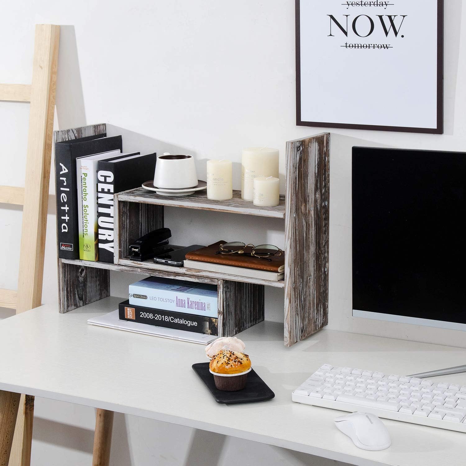 Quickly declutter your work station and boost your productivity with this adorable wooden shelf. Made from premium wood, this rack is light and durable. After simple assembly, it instantly creates a charming rustic style for your home, office, kitchen, studio, and other working stations.