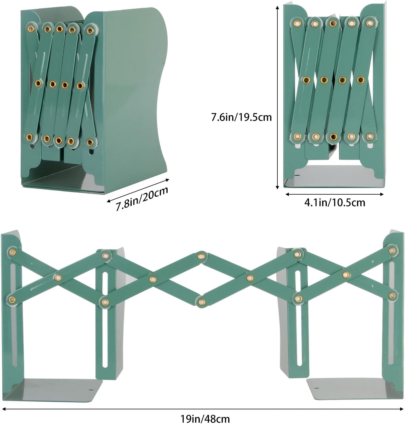 Adjustable Metal Bookends Heavy Duty for Shelves, 2 Dividers, Anti-Slip Design Expandable Book Ends for Desk, Office(Dark Green, 19 inches Max)