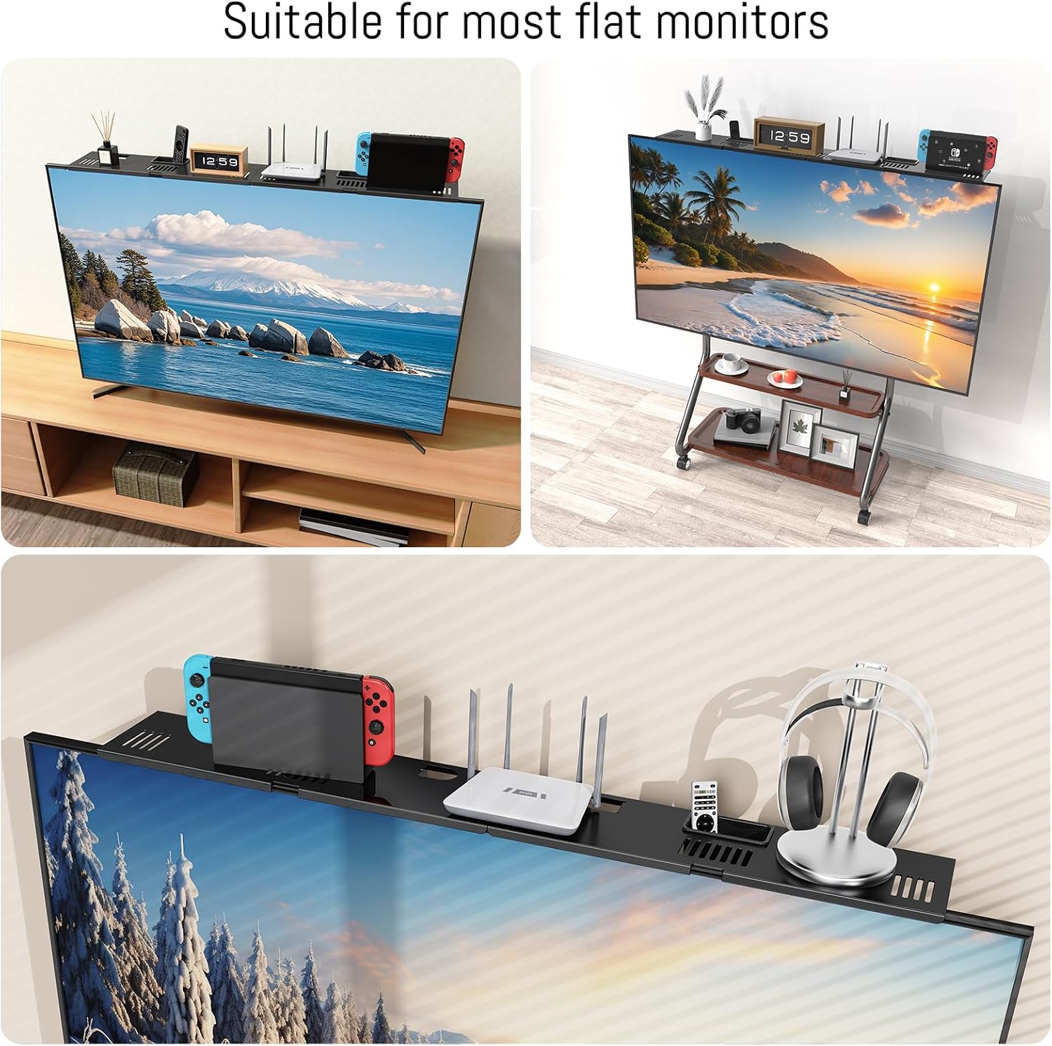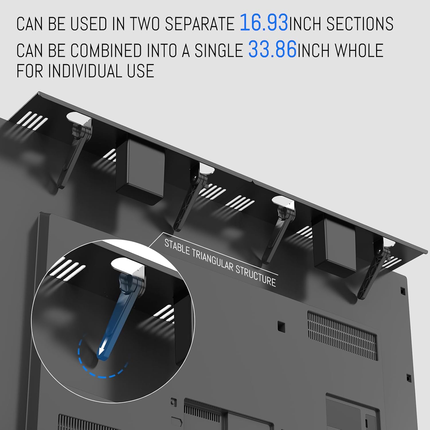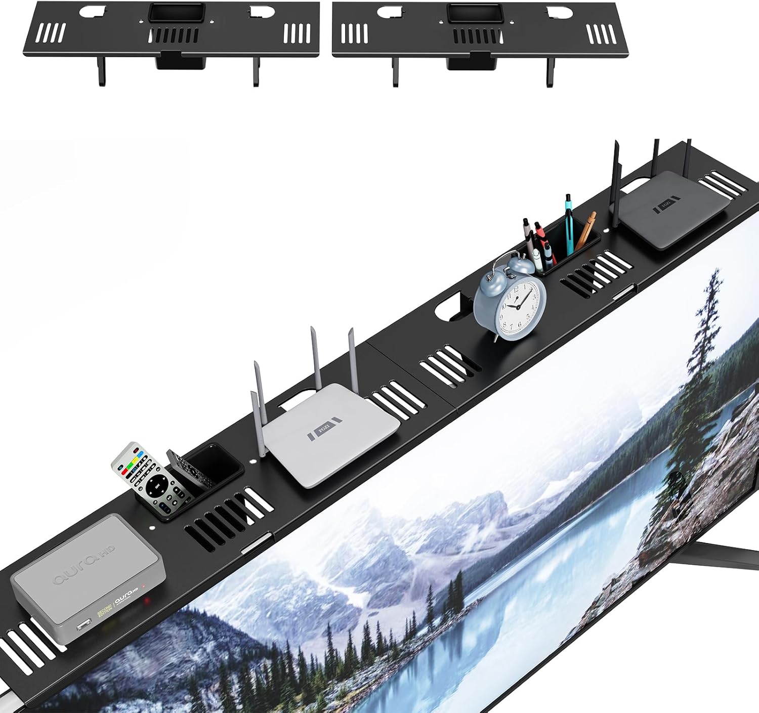 ADJUSTABLE & MODULAR DESIGN: Split into two 16.93-inch units for flexible setups or combine into a 33.86-inch TV top shelf. Perfect for soundbars, game consoles, media boxes, and home decor. Not for curved TVs. Holds up to 13.2lbs