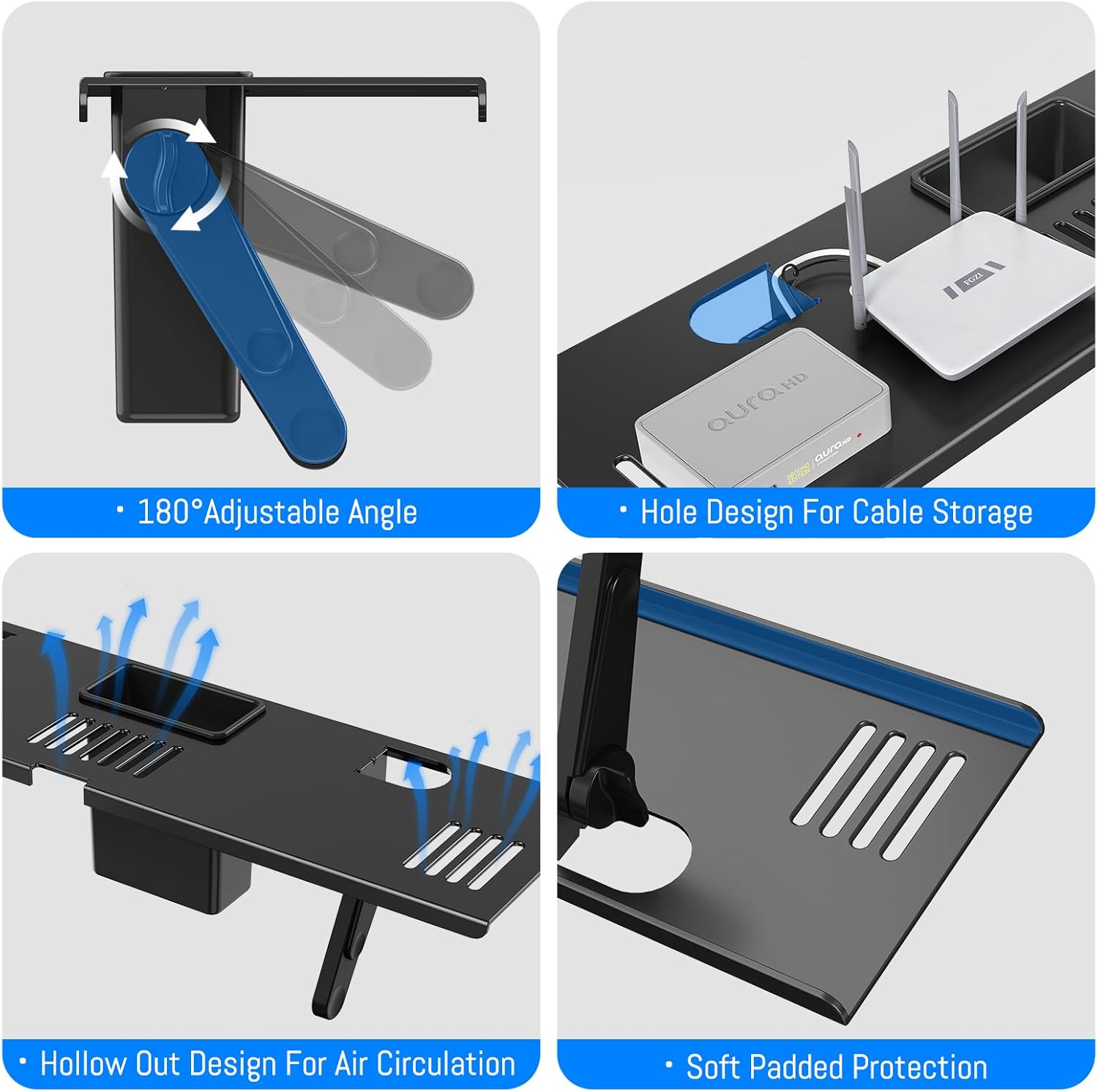 SPACE-SAVING CABLE MANAGEMENT:Hollow-out shelves hide power adapters, USB hubs, and streaming devices neatly. A clutter-free solution for small electronics and accessories like remotes or plants.