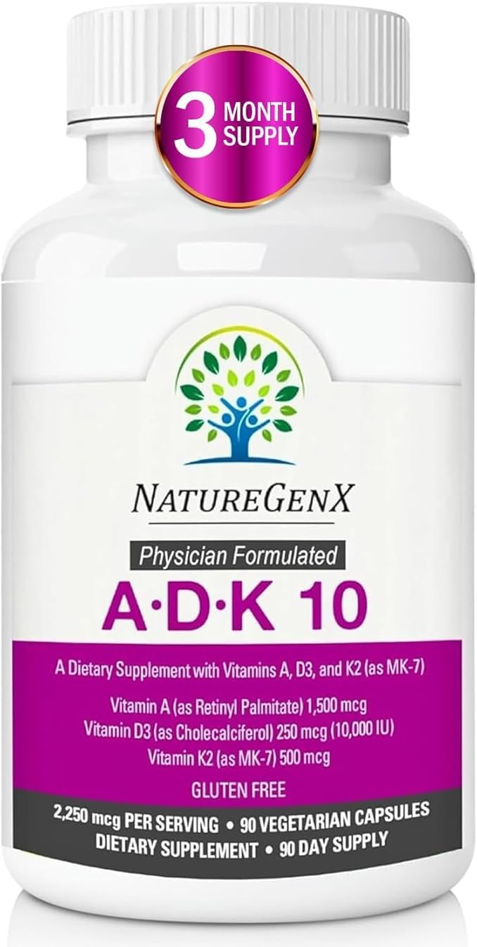 PREMIUM QUALITY, PEACE OF MIND: NatureGenX ADK 10 is crafted in the USA within a cGMP and FDA-registered facility. Each batch of our vitamin A, d3 and k2 undergoes rigorous testing to affirm purity, potency, and safety, delivering innate and potent nutrition free from fillers or artificial additives. With a 90-day supply in each bottle of vitamin a & vitamin d with k, trust us to support your health journey every step of the way.