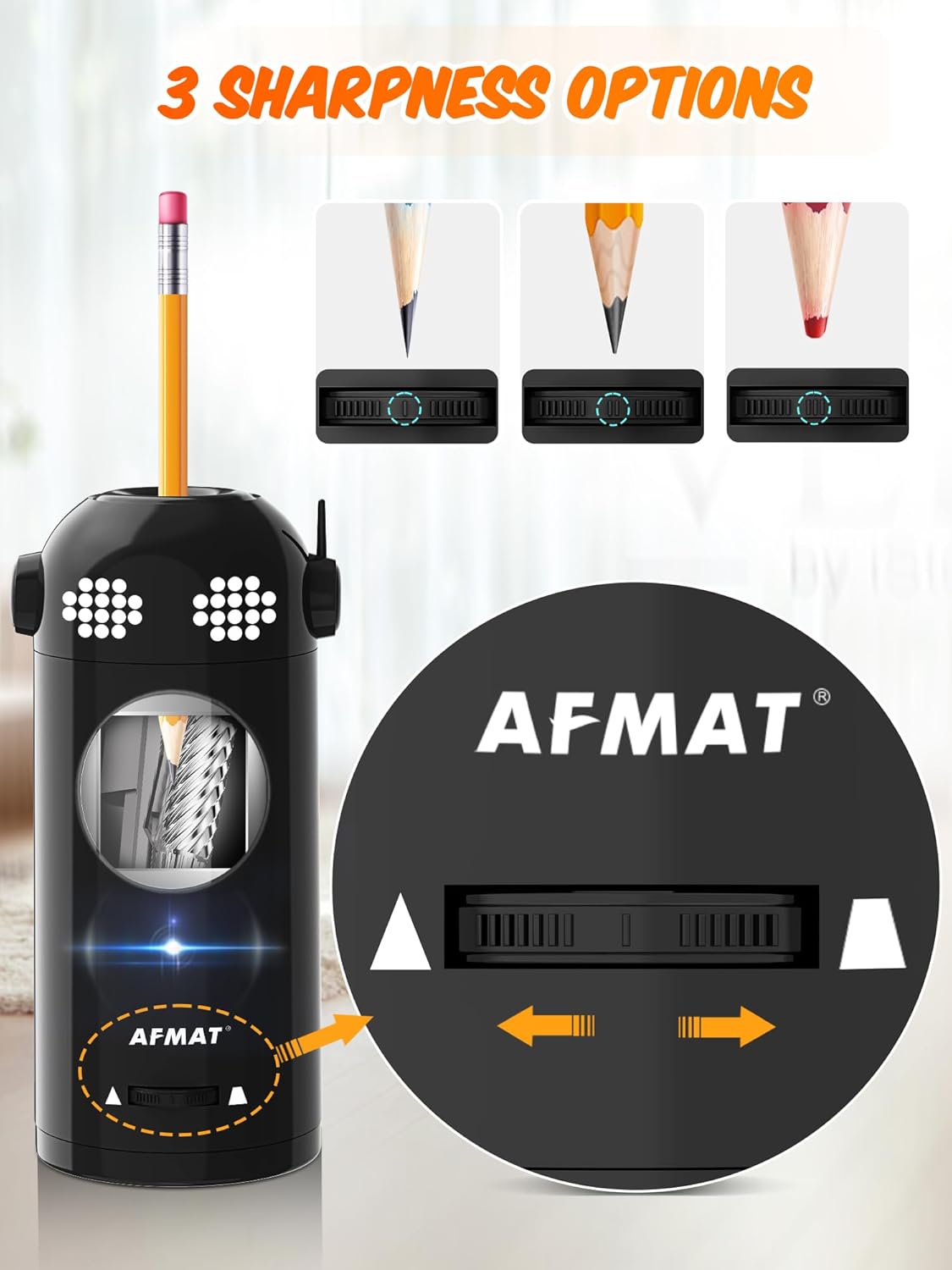 AFMAT Electric Pencil Sharpener Fully Automatic, Robot Pencil Sharpener for 7-11.5mm Pencils, Rechargeable Sharpener Hands-Free, Battery Operated for Home, Office, Classroom