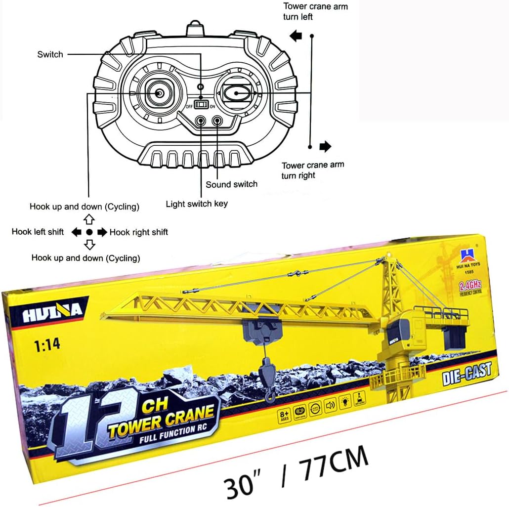 Ailejia 12 Channel Remote Control Crane Toy, 2.4GHz RC Tower Crane 360° Rotation Lift Construction Vehicles Truck Vehicle for Kids