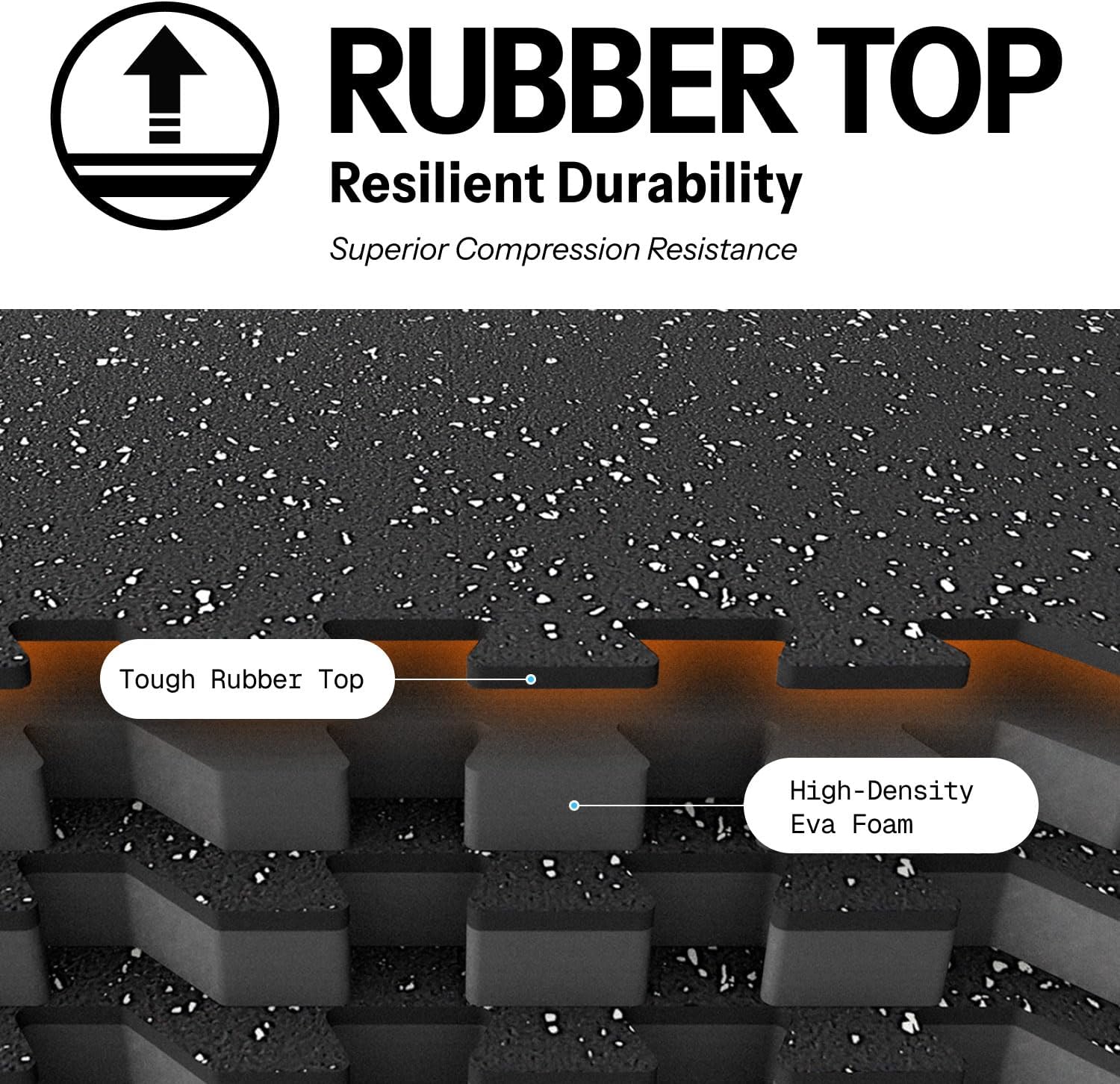 [Upgraded Dual-Layer Design]: Concerned about your equipment scratching the floor during workouts? Our 2in1 Rubber Top EVA Foam Exercise Gym Mats are crafted to solve this issue. The textured rubber top layer, combined with a high-density EVA foam bottom layer, seamlessly creates a non-slip tough surface with excellent shock absorption.