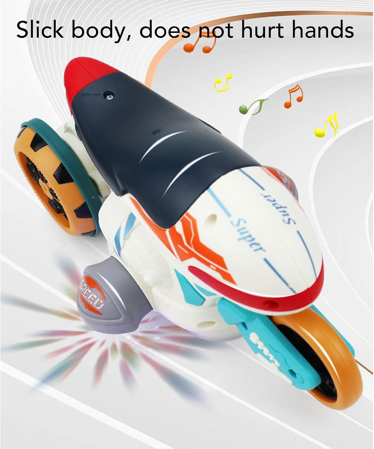 [Secure] : Made of premium abs material, the rotating motorbike offers a sturdy foundation for safe and confident play, ensuring peace of mind for parents.