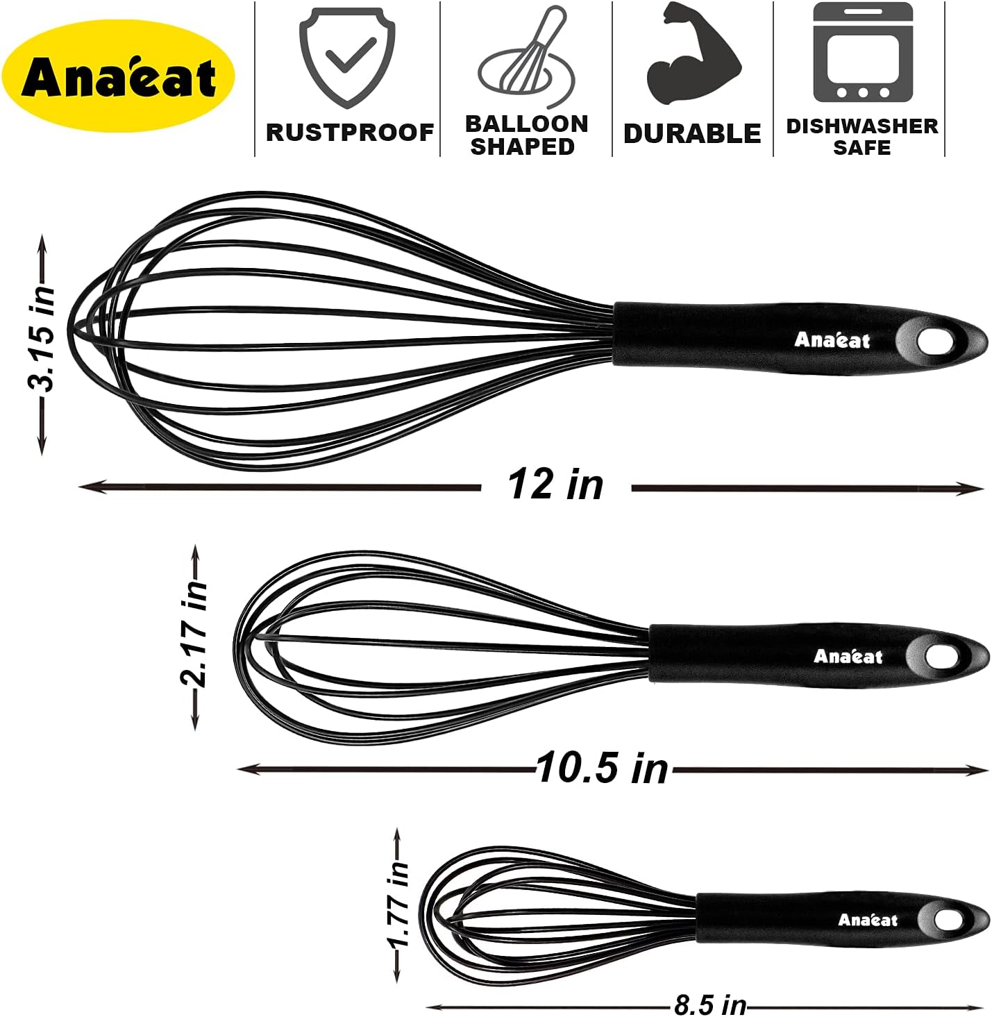 【HEAT RESISTANT & DURABLE & HEALTHY】Silicones are resistant to heat up to 450 degrees Fahrenheit, making them ideal for cooking almost any favorite food. Anaeat WHISK won’t discolor, warp or melt. Easy to clean – Dishwasher safe.