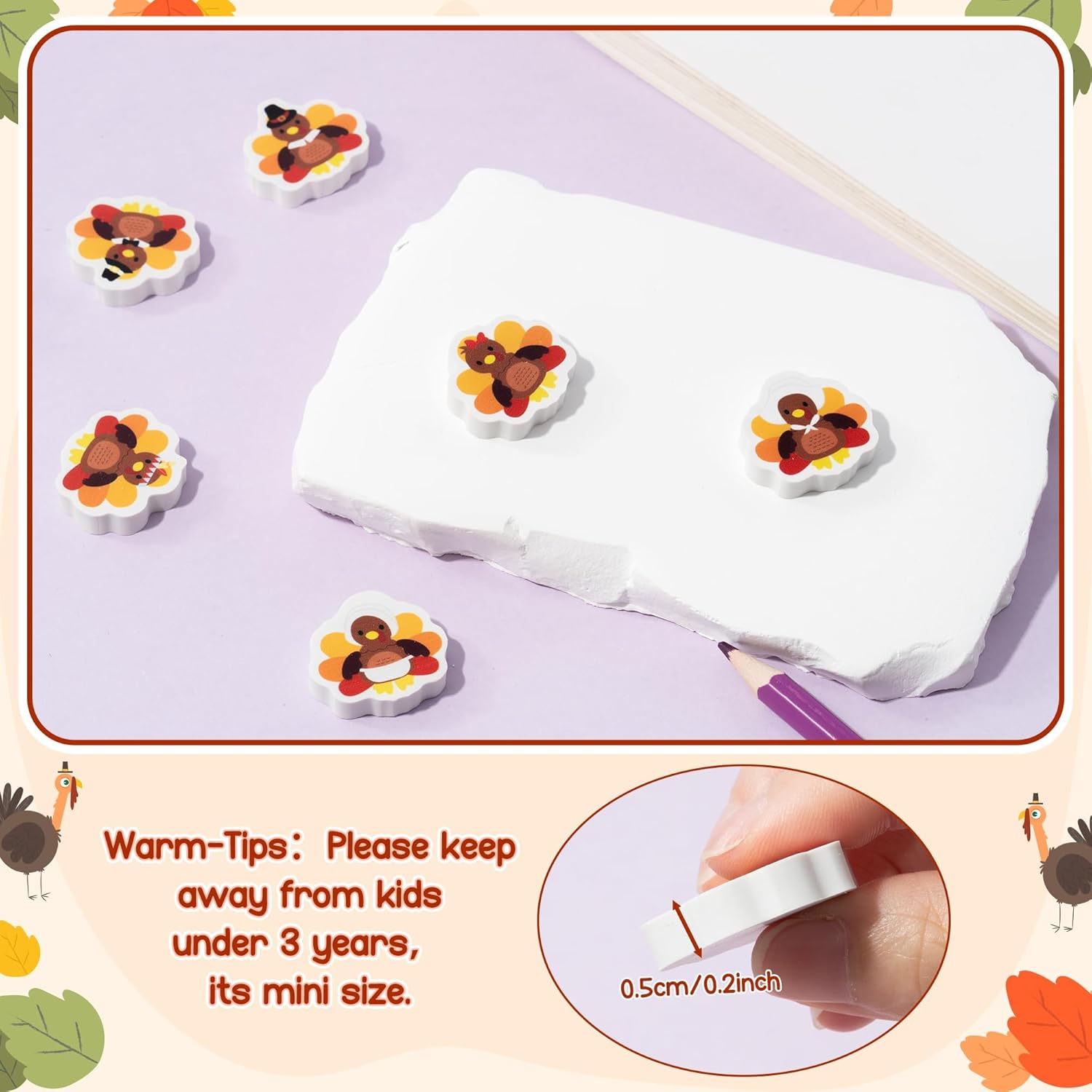 Package Includes: 60 mini thanksgiving turkey erasers in 6 styles (10 erasers per style). The versatile styles and bright colors are loved by children and can be used as ideal classroom rewards and gift fillers.