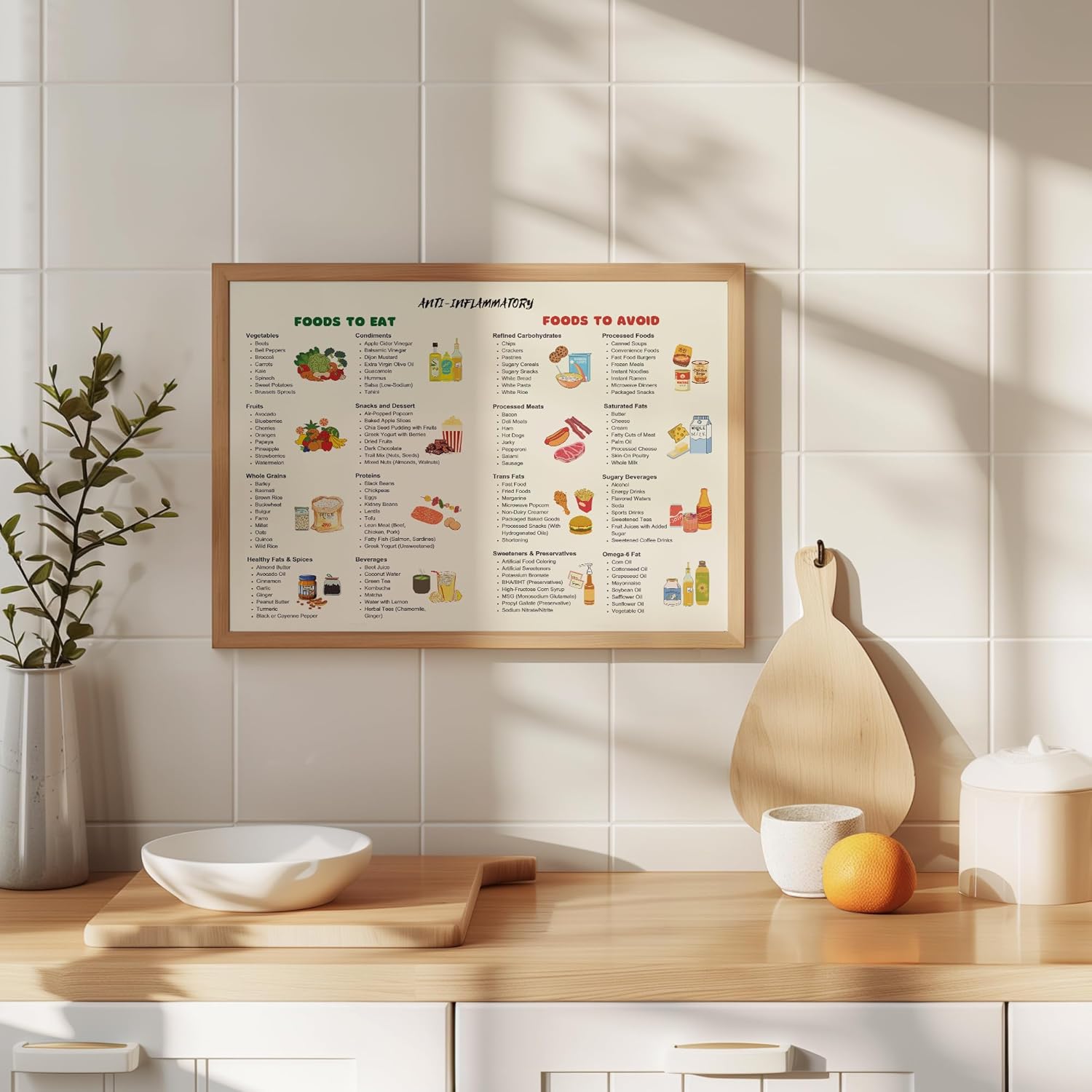 Anti-Inflammatory Food Guide Poster -12×16″ Nutrition Chart for Healthy Eating, Anti Inflammatory Diet Wall Art, Grocery List & Conversion Chart for Kitchen Decor, Inflammation Reducing Foods-UNFRAMED