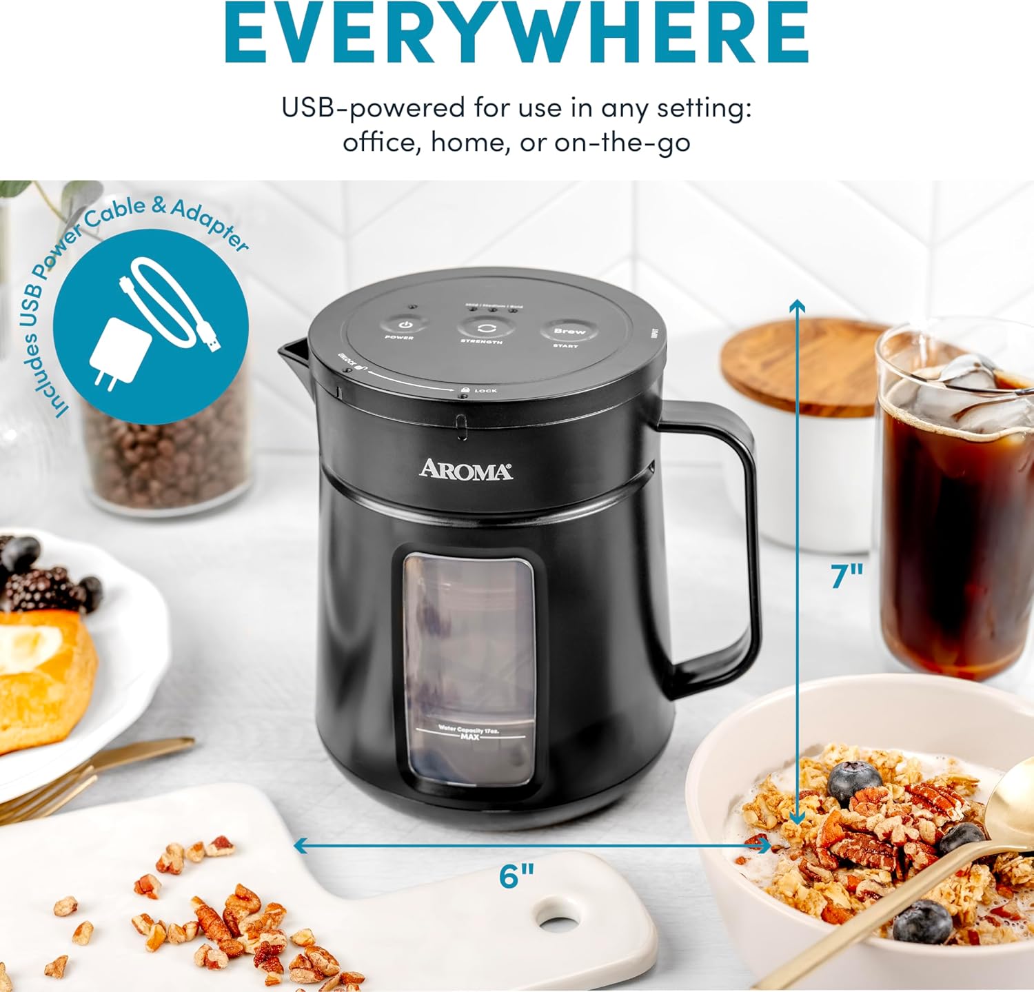 WORKS ANYWHERE: Make fast cold brew anywhere – even with a portable USB power bank! Aroma’s new, best cold brew maker prepares up to 17 ounces in 5 to 15 minutes.