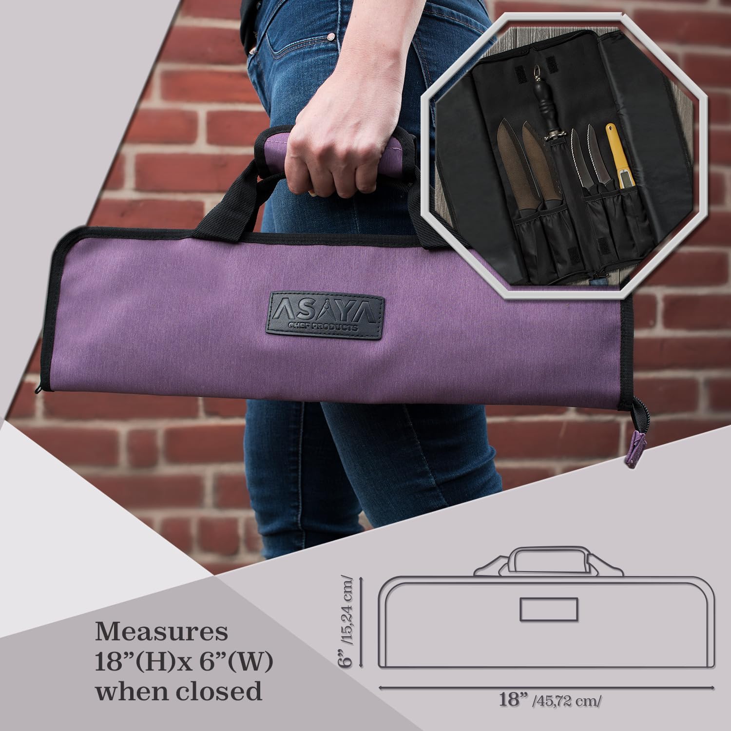 Asaya Chef Knife Roll Bag – 12 Pockets for Knives and Kitchen Utensils – Lightweight, Durable, and Stain Resistant Nylon – Perfect for the Traveling Chef – Knives not Included (Purple)