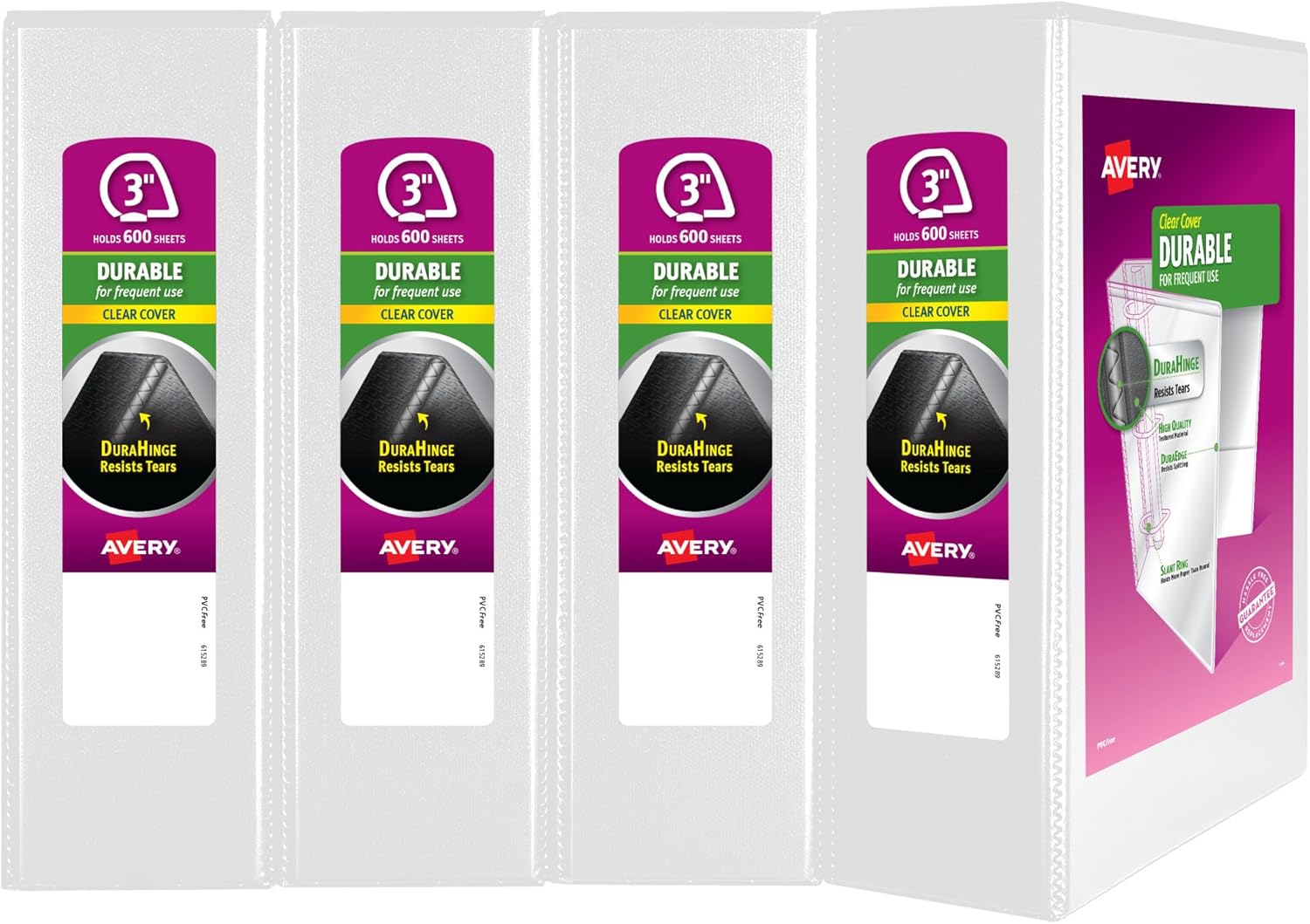 Avery 3 Ring Binder 3 Inch Slant Rings Durable View, White Binder for Home, Office, or School Use, 4 Pack (17030)