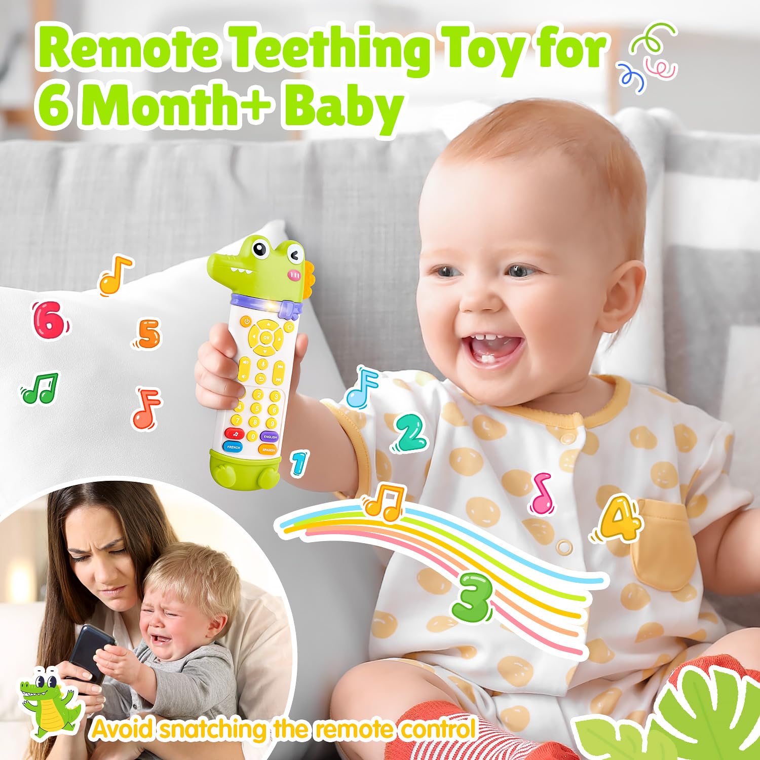 Montessori Early Learning Remote Toy: Perfect for babies 6 months and up, this developmental educational baby TV remote toy features a unique crocodile design and colorful buttons to help kids recognize animals, colors, and numbers. The gentle lights and fun sound effects provide sensory stimulation, promoting visual and auditory development.