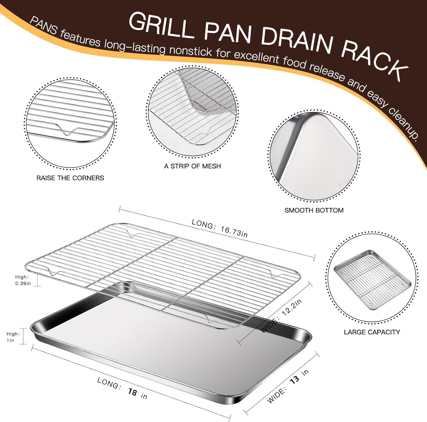 Baking Sheet with Rack Set (3 Pans + 3 Racks) Bakeware,Stainless Steel Cookie Sheet with Cooling Rack, Nonstick Baking Pan, Warp Resistant Baking Tray with Grill