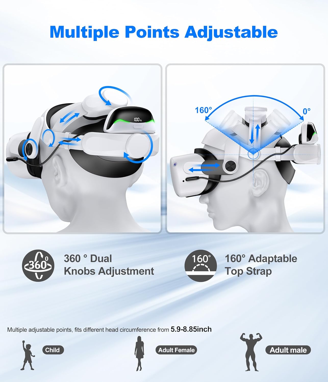 【Adjustable Fit for All Ages】 Equipped with two adjustable knobs for precise sizing, fitting a wide range of head circumferences. Reduces the weight of the VR headset on your face, making it comfortable for both adults and children to use