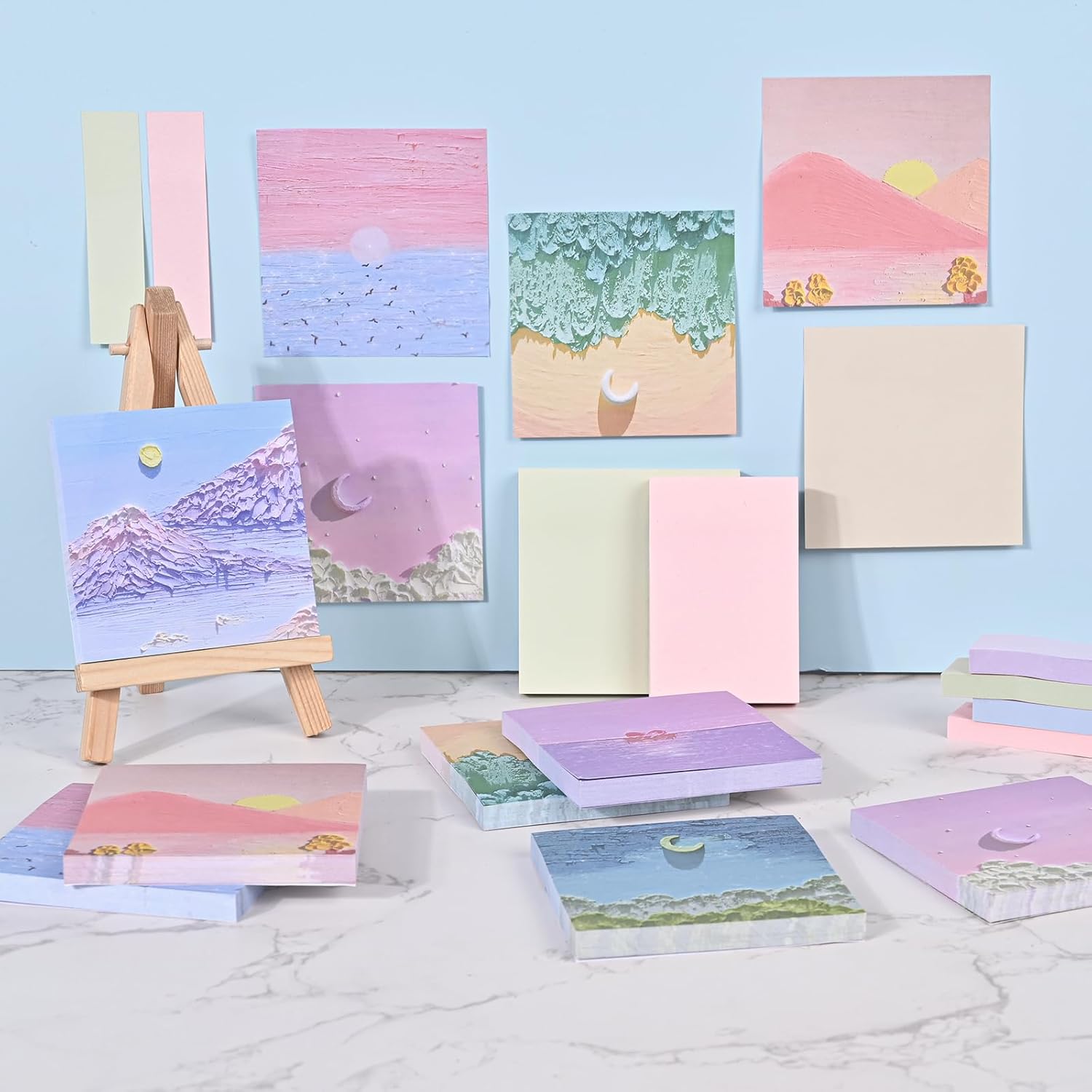 BAYTORY 6 Pads Soft Pastel Sticky Notes, Memo Sticky Note, Colorful Self-Stick Note Easy to Post for Office School Home Study (3×3 & 3×2 & 3×0.7 Inch)