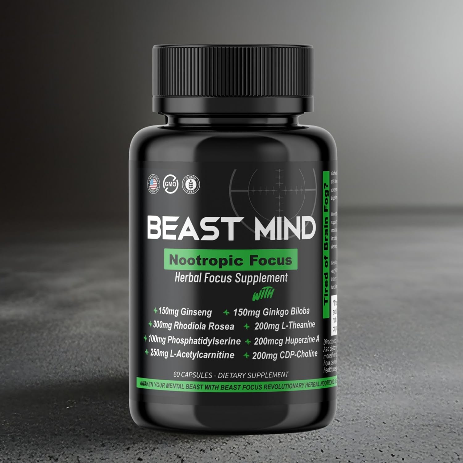 Beast Mind Focus Clarity Nootropic Blend | Ginkgo Biloba | Huperzine A | Rhodiola | Citicoline | L-Theanine | Enhanced Focus & Clarity & Cognitive Function Labs