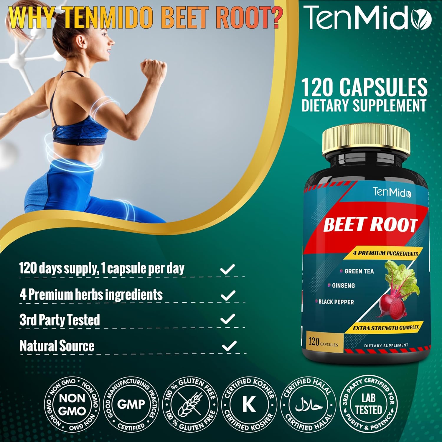✅ In addition to the main ingredient Beet Root Extract, we also combine 3 herbal ingredients body management support in a capsule Green Tea, Ginseng, Black Pepper.