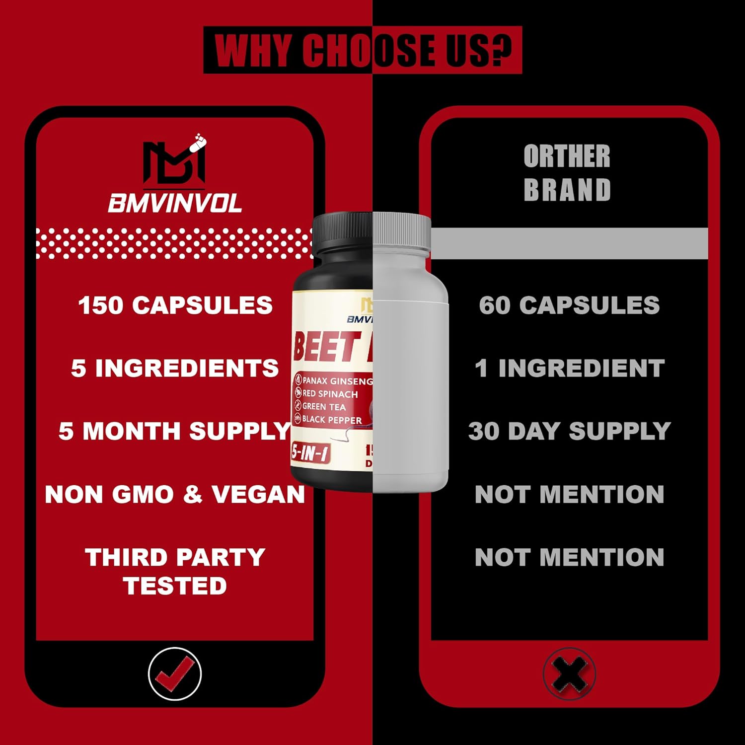 5-in-1 Beetroot complex: Beet Root, Red Spinach, Green Tea, Ginseng, and Black Pepper for optimal absorption.
