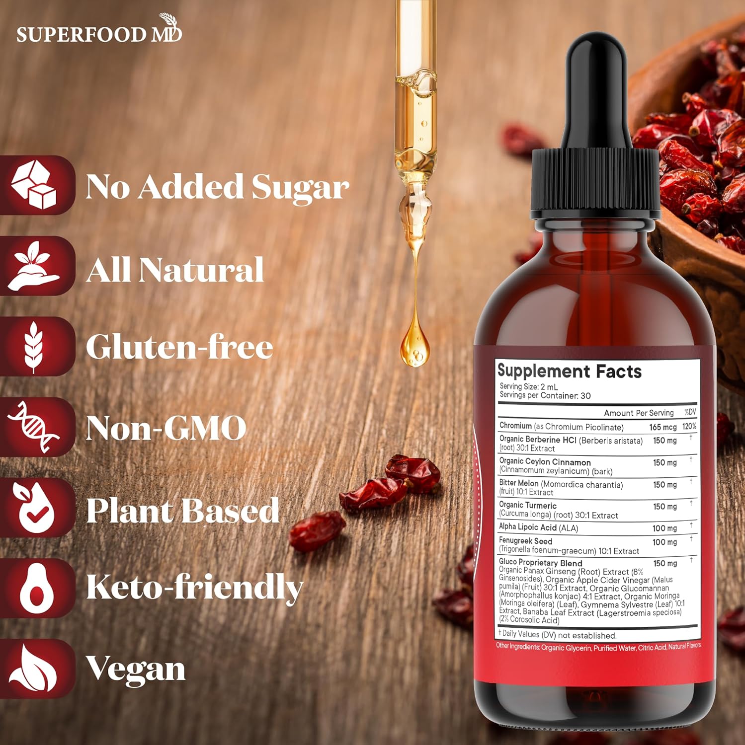 Berberine with Ceylon Cinnamon Supplement Liquid Drops + Bitter Melon Extract, Glucomannan, Gymnema, Chromium, Turmeric, Organic Panax Ginseng, Moringa 2oz