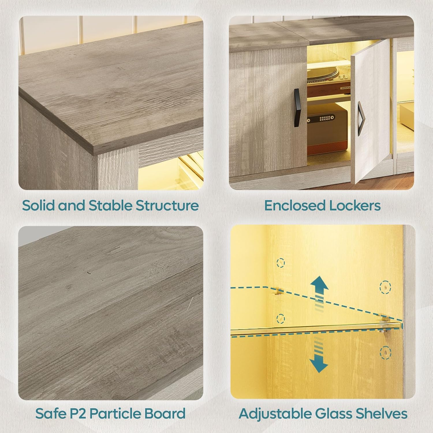 【Solid & Durable Material】Made from scratch-resistant and easy-to-clean P2 grade particleboard, this media console with led lights retains its smooth appearance over time. For safety,the included anti-tip kit provide excellent protection and stability,and can hold up to 266 pounds to meet all your daily needs
