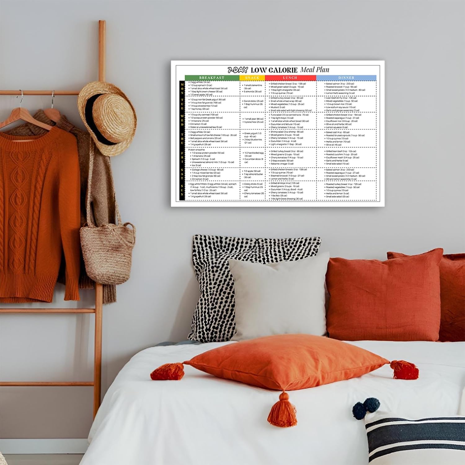 Comprehensive Food List: This low-calorie meal plan poster offers a detailed weight loss food list designed to support your journey towards healthier eating and effective calorie management.