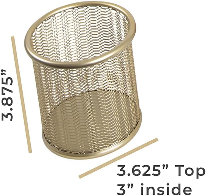 Space-Saving Organizer: Its compact design makes this gold pencil cup an ideal storage solution for desks of all sizes, helping you optimize workspace while maintaining an elegant and tidy appearance.