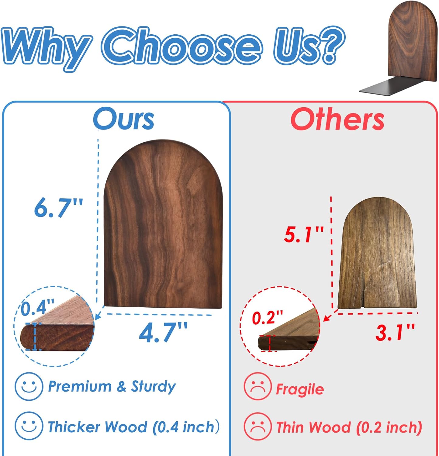 Natural Black Walnut Craftsmanship: Crafted from black walnut with unique natural grain patterns—no veneers or synthetic dyes, each pair is unique. Thicker wooden bookends are more durable and resistant to drops, adding the breath of nature for your desk.
