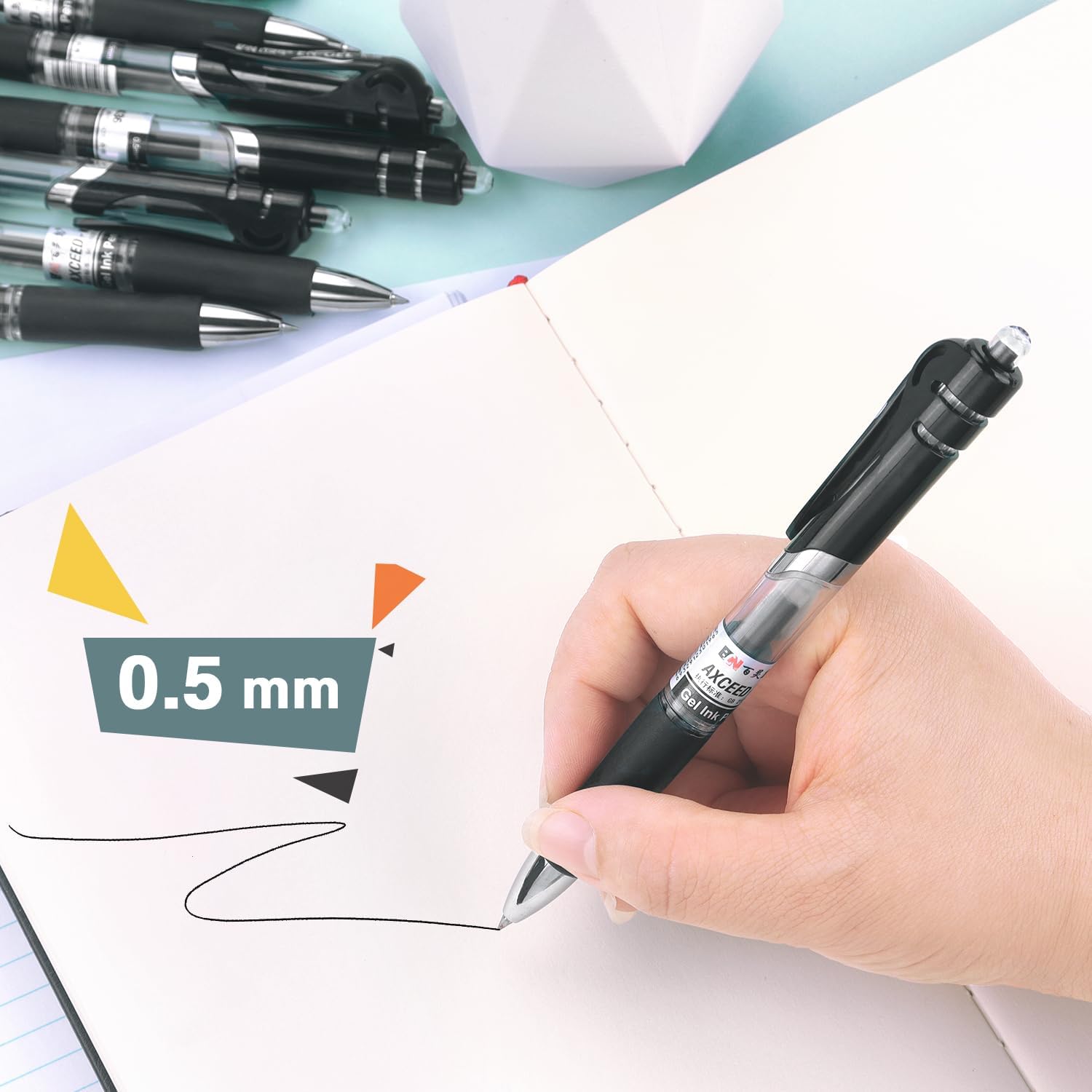 These fine point pens have a 0.5mm tip that aid in crisp and clear writing, making them trustworthy pens for note taking and detailed tasks, Enjoy premium quick-dry ink for effortless, smear-proof writing with these black gel pens.