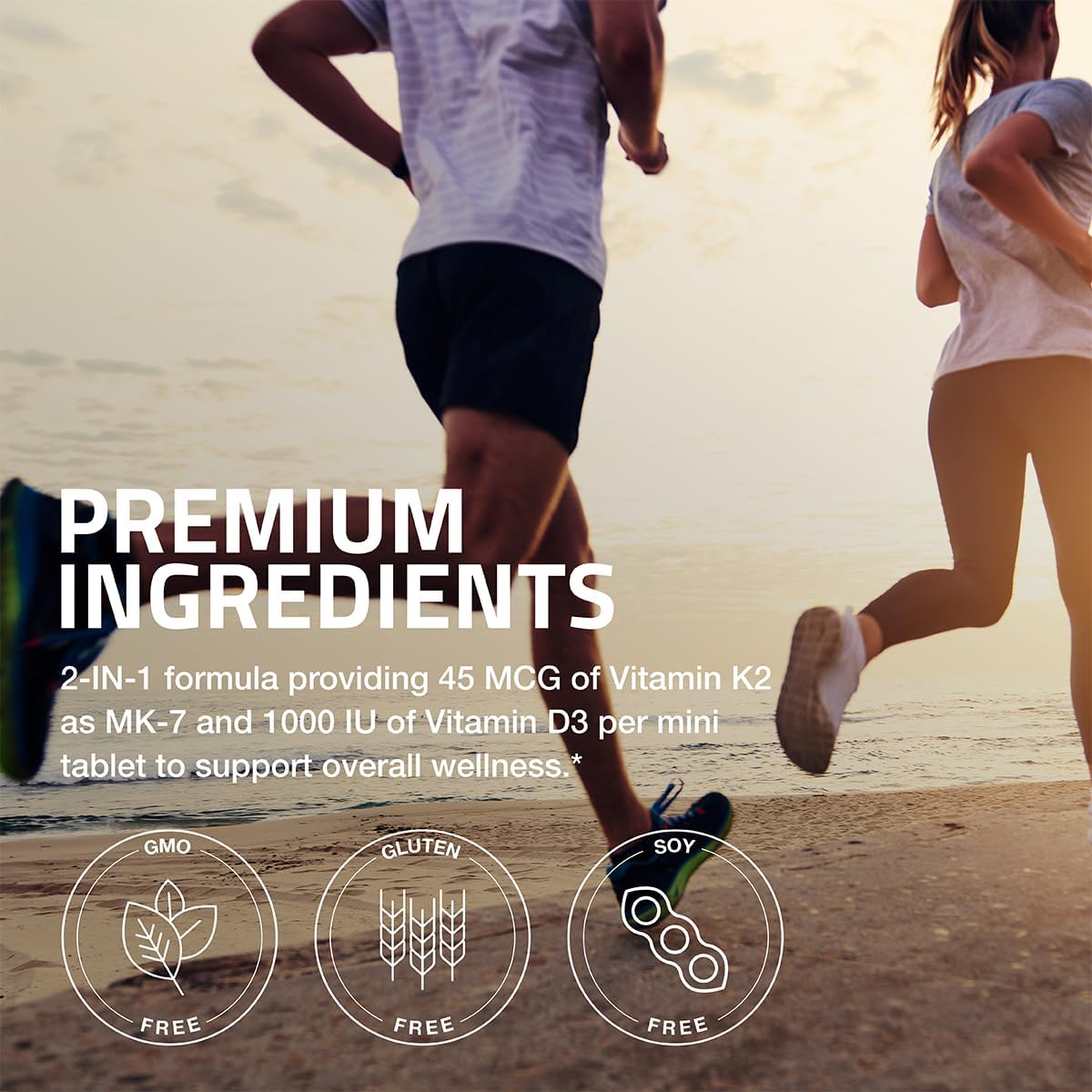 Bronson Vitamin K2 (MK7) with D3 Lower Dose 45mcg Vitamin K2 & 1000 IU Vitamin D3 Easy to Swallow Daily Maintenance 2 in 1 Formula Non-GMO, 360 Mini Tablets