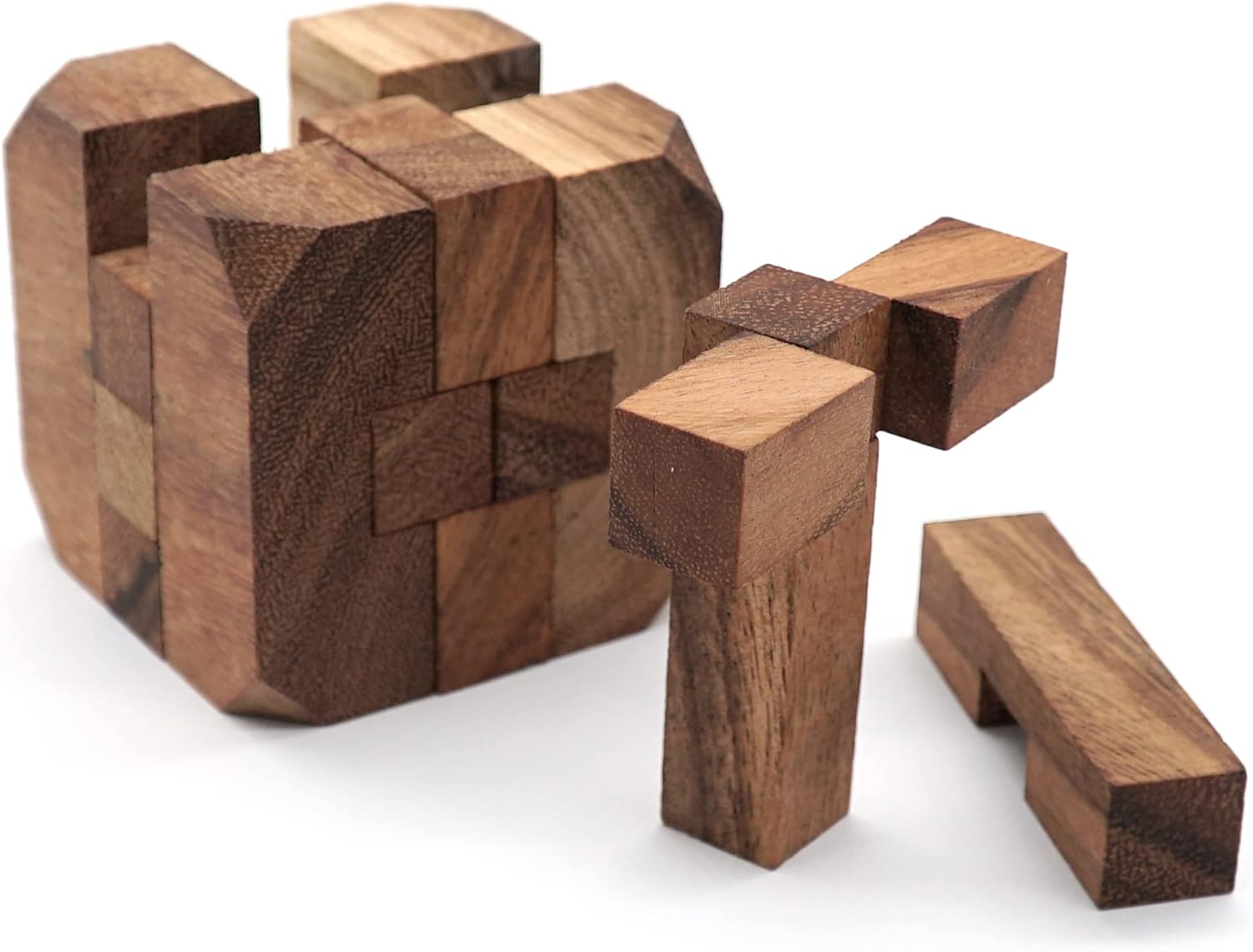 WOODEN PUZZLES FOR ADULTS MIND GAMES – The magic wooden cubes brain teasers for adults and kids puzzle set is made of 100% natural wood. Durable Monkey Pod wood has been used and every piece of the set is handcrafted with great precision to ensure an easy and correct fit. The wood is hypoallergenic and chemical free with no discernible odor