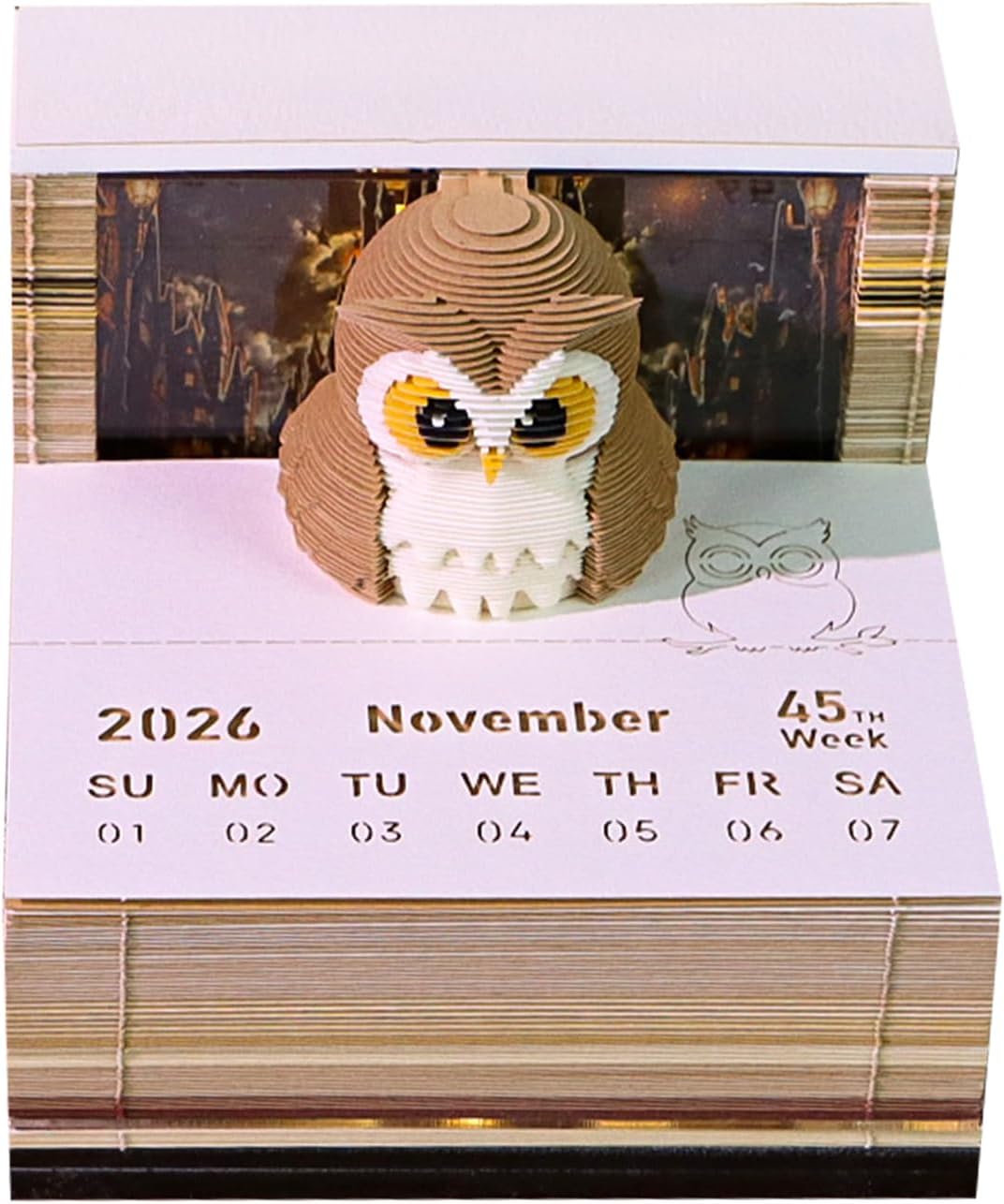 Calendar 2026, 2026 Time Piece With LED Light,Owls Tear-Away Notepad, Tear-Away Desk For Record, Planner & Gift & Decorative Office Decor,Artistic Desk Planner