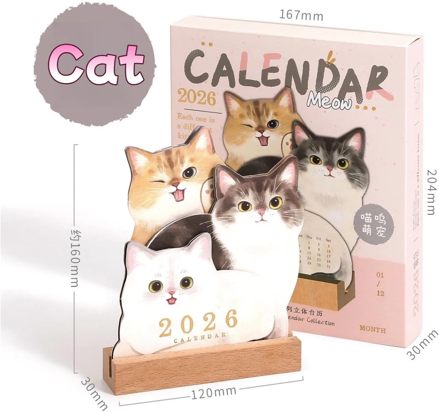 WOODEN BASE: The standing desk calendar includes a solid wooden base that holds it securely upright on any flat surface