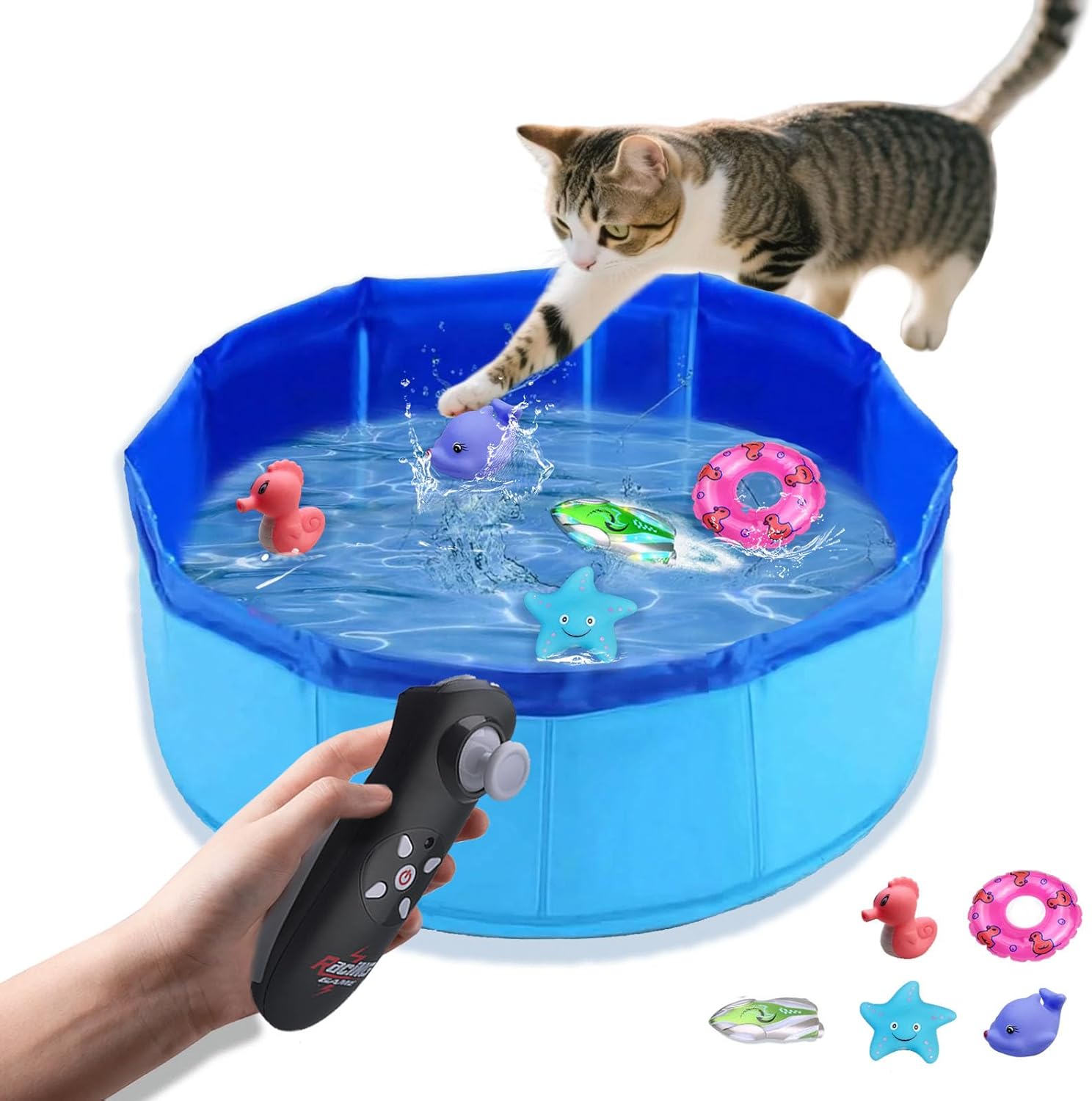 INTERACTIVE DESIGN: Features Remote Control LED light-up Boat that create engaging motion in water to stimulate your cat’s natural hunting instincts