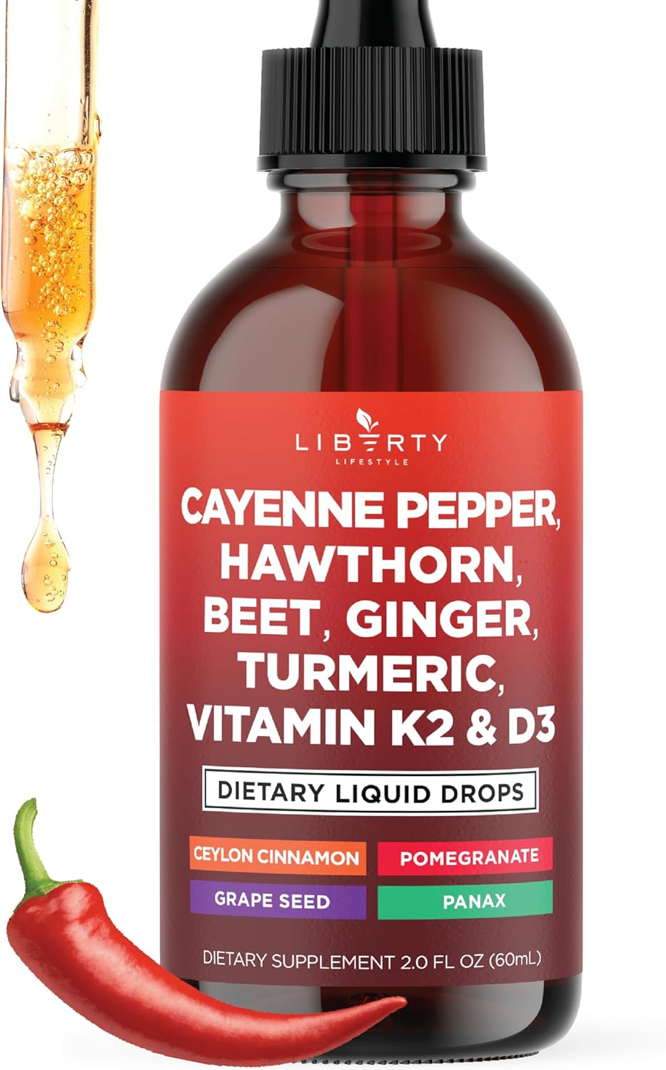 Trusted Quality – Made in the USA with Non-GMO ingredients, these liquid drops undergo third-party testing on every batch for your safety. Featuring cayenne pepper supplements, hawthorn berry capsules in liquid drop, organic beets, turmeric liquid supplement, vitamin D3 K2, ginseng root, Ceylon cinnamon supplement