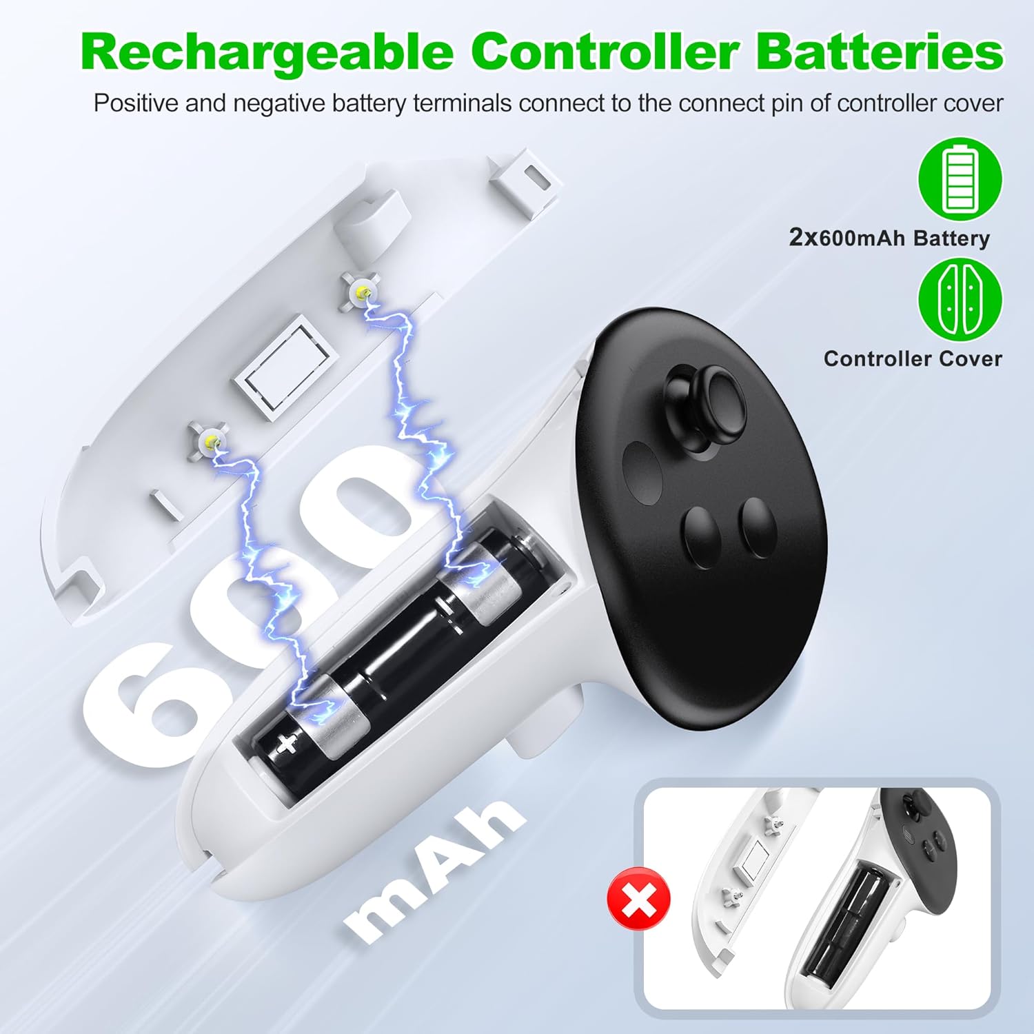 【MAGNETIC FAST CHARGING STATION FOR VR 3 ACCESSORIES】Equipped with 20W charger and USB cable, two 600mAH touch controller rechargeable batteries can fully charge two batteries in 1.5 hours and VR headset in 2.5 hours, bidding farewell to disposable batteries and saving money and durability. The VR 3 charging dock is designed with short circuit/overcharge/overcurrent protection to ensure safe charging and extend the recovery time of rechargeable batteries