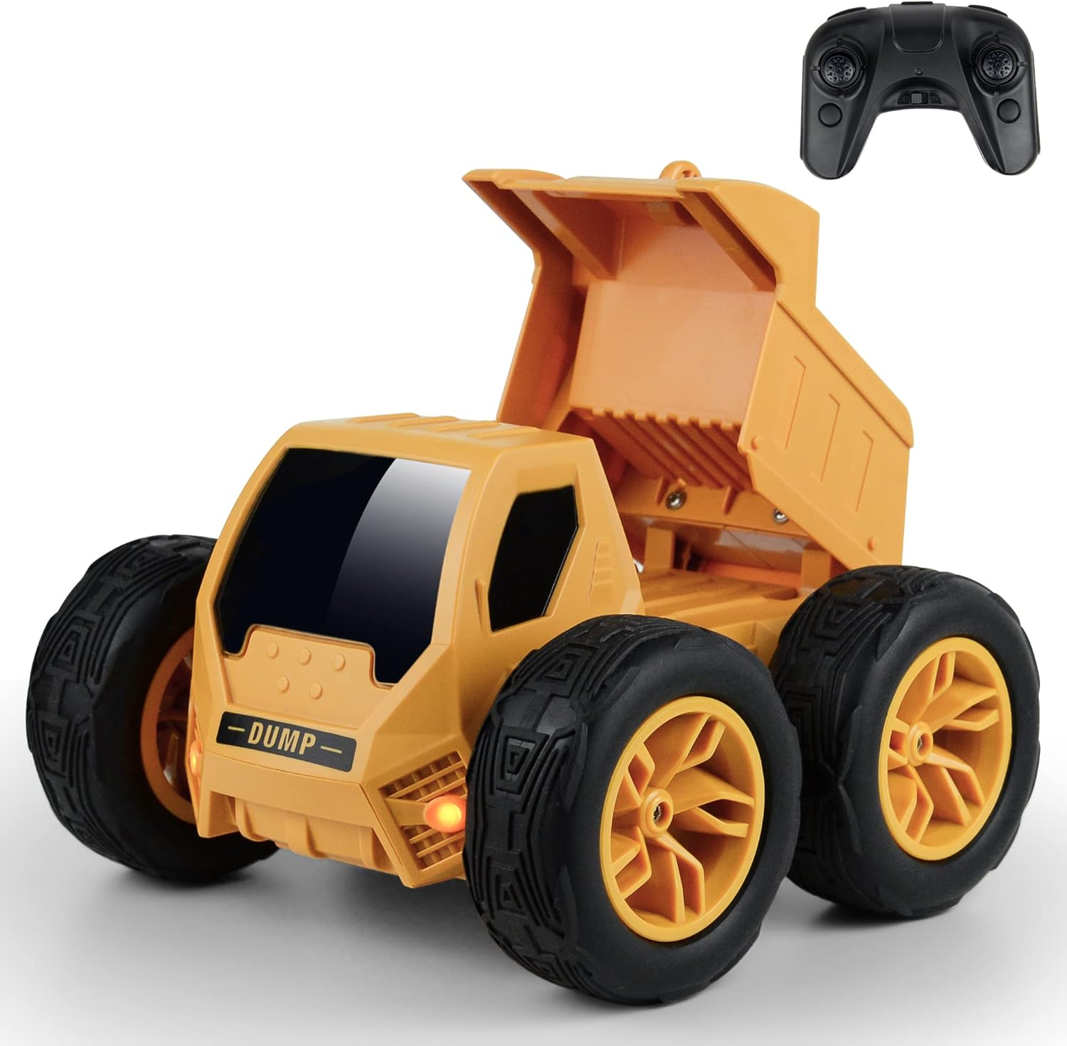 Stunt Tumbling:Kids can control the Rc dump car by controller.This tuck can one-cick unload,360° tumbling,and upright 360° rotation.With LED lights to let children feel the novelty of control truck fun.