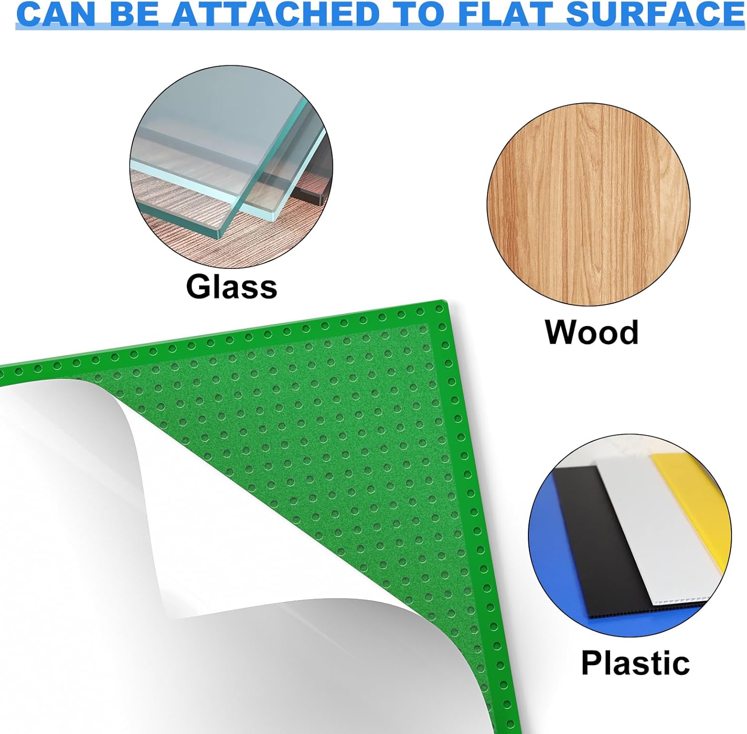 [PEEL-AND-STICK BASEPLATES] The baseplates features adhesive backs, enabling you to stick them on various surfaces such as table top, wall, etc. Create your unique bricks display area with these plates for building!