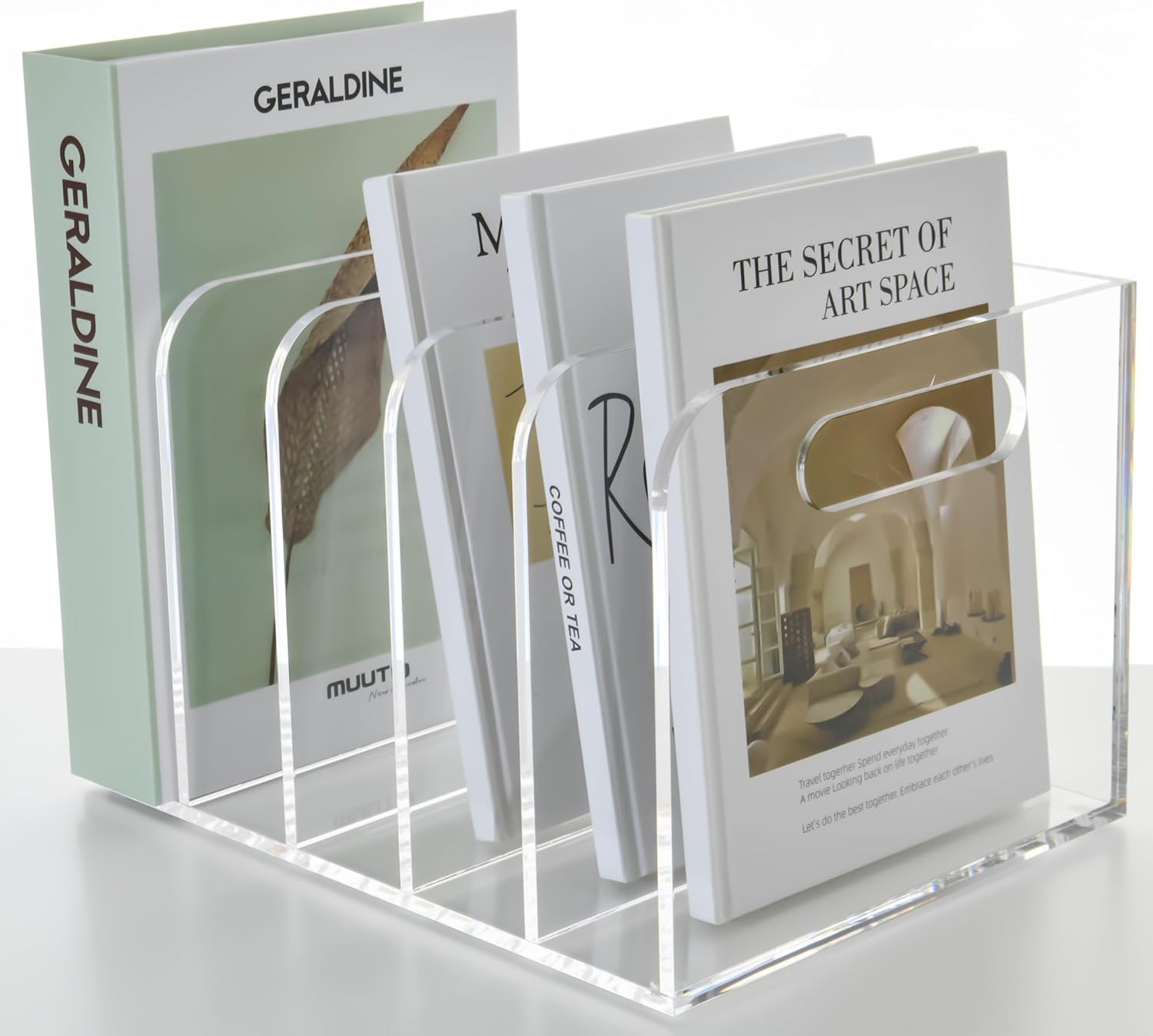 Large Capacity Magazine Holder: Featuring 5 compartments, measuring 10.04″ x 7.48″ x 6.3″, Vertical space structure saves space. Clear divisions make it possible to categorize items clearly and to keep the desktop tidy.this Acrylic Magazine Holder is perfect for organizing your documents, magazines, files, letters, and more, making it an essential file sorter for any workspace.