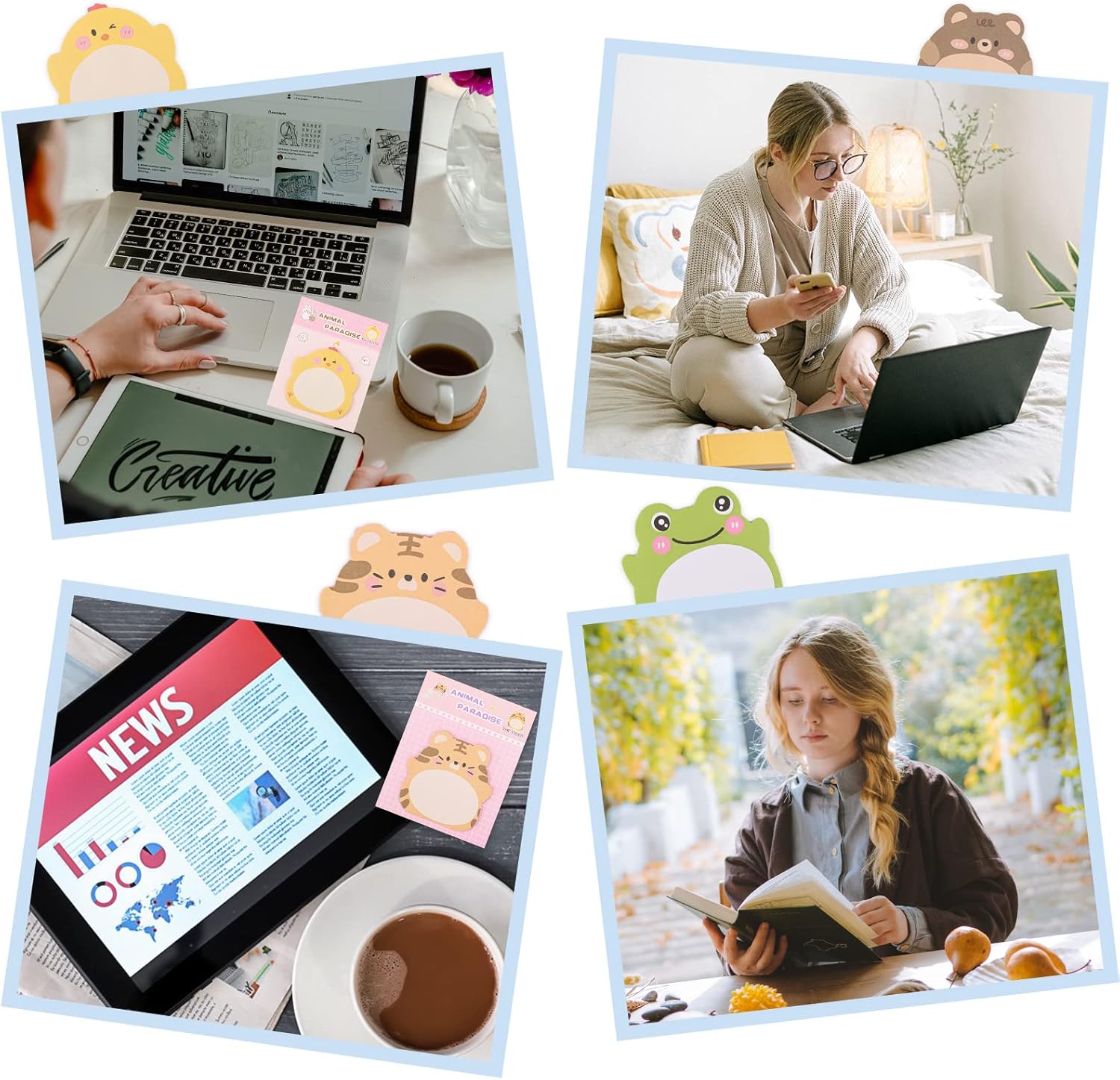 【Cute Animal Sticky Notes】you will receive 8 pack of cute cartoon post it notes with different animal shape designs, such as rabbit, tiger, frog, penguin, bear, pig, and so on, cute and vivid. The cute self stick notes can give you a good mood while using them and can attract your attention to remind the forgettable things. It’s also a wonderful gift for kids to enhance their interest in writing something.