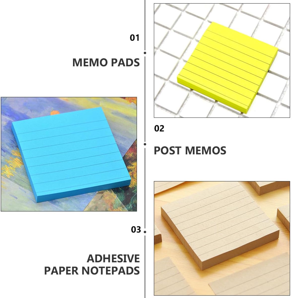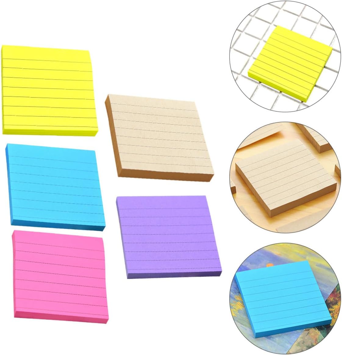 COHEALI Striped Adhesive Notepads Fluorescent Red Yellow Kraft Blue Purple Erasable Sticky Memo Pads for Office School Home Smooth Writing Post Notes for to-do Lists and Reminders